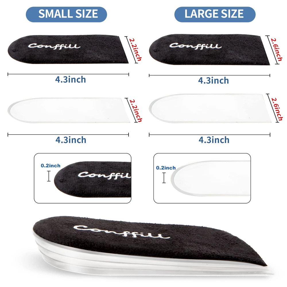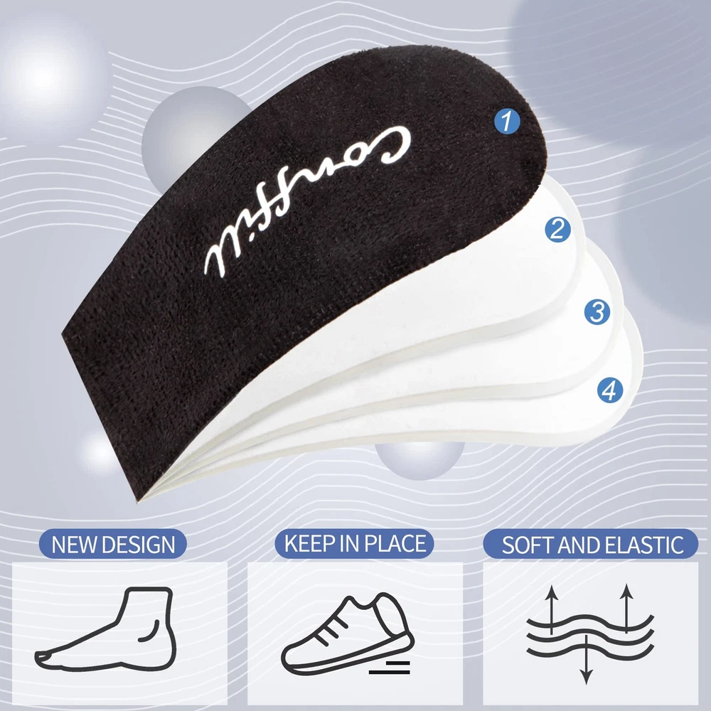 Adjustable Orthopedic Heel Lift Inserts Gel Height Increase Insoles for Women Men Leg Length Discrepancy, Heel Pain, Heel Spurs, 4-Layer Stackable Gel Shoe Lifts Lift Shorter Leg Uneven HIPS HEEL PAIN RELIEF: The Heel Lift Insert is ideal for leg length discrepancies, heel pain, heel spurs, Achilles tendonitis and other heel conditions. The cushion shoes inserts aims to reduce foot injuries, adjust legs length discrepancy, and provide you with all-day comfortable and soft heel support. Adjustable Height Increase Insoles: 4 layers of removable heel lifts for shoes, 1/4 each inch layer can be combined to increase height at will without anyone noticing.These heel adjustable inserts are designed with an easy-to-use, high-viscosity film so that the heel pads do not move around in the shoe. High Quality Material: heel lifter is made of soft & durable PU gel, and the fabric of heel cups is breathable, moisture wicking, durable, will not deform in long term use, and can be re-washed and reused. WIDE APPLICATION:This gel shoe insert has excellent padding support to support long periods of standing, walking, running, hiking, dancing, or any other standing activity! Gel shoe lifts for women and men, suitable for all types of shoes, such as running shoes, formal shoes, boots, sneakers, work shoes, leather shoes, etc. FOCUS FOOT HEALTH: Conffill has always focused on foot health and comfort, the heel lifts for shoes will help to left/right heel lift, prevent the development of heel disease and provide feet comfort. Try it and you'll love it, either as a gift or for your own use! Add this item to your cart with confidence! Please contact us when you have any questions. We are committed to providing only the best foot products and services. HEEL PAIN RELIEF: The Heel Lift Insert is ideal for leg length discrepancies, heel pain, heel spurs, Achilles tendonitis and other heel conditions. The cushion shoes inserts aims to reduce foot injuries, adjust legs length discrepancy, and provide you with all-day comfortable and soft heel support. Adjustable Height Increase Insoles: 4 layers of removable heel lifts for shoes, 1/4 each inch layer can be combined to increase height at will without anyone noticing.These heel adjustable inserts are designed with an easy-to-use, high-viscosity film so that the heel pads do not move around in the shoe. High Quality Material: heel lifter is made of soft & durable PU gel, and the fabric of heel cups is breathable, moisture wicking, durable, will not deform in long term use, and can be re-washed and reused. WIDE APPLICATION:This gel shoe insert has excellent padding support to support long periods of standing, walking, running, hiking, dancing, or any other standing activity! Gel shoe lifts for women and men, suitable for all types of shoes, such as running shoes, formal shoes, boots, sneakers, work shoes, leather shoes, etc. FOCUS FOOT HEALTH: Conffill has always focused on foot health and comfort, the heel lifts for shoes will help to left/right heel lift, prevent the development of heel disease and provide feet comfort. Try it and you'll love it, either as a gift or for your own use! Add this item to your cart with confidence! Please contact us when you have any questions. We are committed to providing only the best foot products and services. Shipping from the USA All of our products are shipped from the USA, ensuring quick delivery to your destination. Payment We offer the following payment methods: PayPal, credit card, bank transfer, and eBay's secure payment system. Free Shipping & Free Returns Shipping within the USA is FREE. Additionally, any return is absolutely free for you. Risk-Free Purchase You have the option to return an item within 30 days without any justification. We cover the return shipping costs! Fast Shipping We ship immediately upon receipt of payment. Generally, the package is delivered within 2-3 days in the USA. If it takes longer, we will contact you. Quality and Costs Made in Europe, USA, China No customs fees or additional charges Total satisfaction guarantee Invoice with declared VAT available upon request in .pdf format Feedback Your feedback is very important to us. After you pay for your purchase, you will automatically receive positive feedback from us.