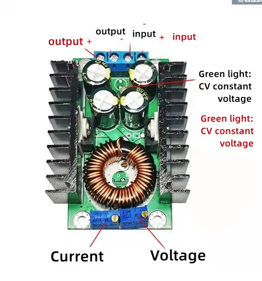 SAFE & SECURE SHOPPING 100% SATISFACTION GUARANTEED FAST SHIPPING Store Categories Store Categories You may also like Adjustable Power Supply Module DC-DC CC CV Buck Converter Step-down Power Module Product Description Adjustable Power Supply Module DC-DC CC CV Buck Converter Step-down Power Module 7-32V To 0.8-28V 12A 300W Features: 1. Fixed turn lamp current is 0.1 times the current value ( Used to identify whether the battery is fully charged When charging). 2. Made from a dedicated benchmark for IC and high-precision current sensing resistor, proving a more stable constant current, (when 20° to 100° constant current 1A, temperature drift less than 1%). Particularly suitable for LED driver. 3. High output current, the max output current can reach 12A. 4. Four high frequency capacitance, can lower output ripple, enhance the work stabilization. Applications: 1. High-power LED driver 2. Lithium battery(or lead accumulator) charge 3. Vehicle-mounted power supply 4. Low voltage system power supply 5. 6V, 12V, 14V, 24V battery charge Battery charge: 1. Make sure of the battery float voltage and charging current that you need, as well as the input voltage of the module. 2. Adjust the constant voltage potentiometer and adjust the output voltage to about 5V. 3.Use the multimeter in 10A current scale to measure output short-circuit current, and adjust the current potentiometer to make the output current to the expected charging current value. 4. Adjust the constant voltage potentiometer to make the output voltage reaches the float voltage. 5. Connected to the battery, try to charge. (1,2,3,4 steps to connect the power module input,output no-load does not connect battery.) LED constant current drive 1. Make sure the operating current and Max operating Voltage of the LED you need to drive. 2. Adjust the constant voltage potentiometer, adjust the output voltage to about 5V. 3. Use the multimeter in 10A current scale to measure output short-circuit current, and adjust the current potentiometer to make sure the output current to the expected LED operating current. 4. Adjust the constant voltage potentiometer to make the output voltage reach the maximum LED operating voltage. 5. Connect LED, test. (1,2,3,4 steps to connect the power module input, output No-load does not connect LED.) Specifications: 1. Module Properties: non-isolated step-down constant current, constant voltage module (CC CV) charging module 2. Input voltage: DC 7-32V 3. Output voltage:DC 0.8-28V continuously adjustable 4. Output Current: 9A 12A (when power tube\'s temperature exceeds 65 degrees, please add cooling fan) 5. Constant current range: 0.2-12A ( adjustable ) 6. Turn lamp current: constant current value * ( 0.1 ) , turn the lamp current and constant value linkage, such as constant current value is 3A, turn the lamp current is set to a constant current is 0.1 times (0.1 * 3A = 0.3A). 7. Lowest pressure: 1V 8. Output Power: Maximum power is about 300W 9. Conversion efficiency: up to about 95% 10. Operating frequency: 300KHZ 11. Output ripple: 20M bandwidth 12. Input 24V Output 12V 5A ripple around 50mV (Excluding noise) 13. Output short circuit for protection : Yes, constant current 14. Input Reverse Polarity for Protection: None 15. Output prevent backflow: None 16. Wiring: Terminal 17. No-load current: Typical 20mA (24V switch 12V) 18. Load regulation: ± 1% ( constant ) 19. Voltage regulation: ± 1% 20. Dynamic response speed: 5% 200uS 21. Potentiometer adjustment direction: clockwise (increase) , counterclockwise (decrease). the potentiometer(CV) closed to the input voltage is used to regulate voltage, the potentiometer(CC) closed to output voltage is used to regulate current (CC) 22. Operating temperature: Industrial grade (-40 °c to +85 °c) ( please note the actual use of the power tube temperature , high temperature heat strengthened please ) 23. Indicator: dual color indicator, charging indicator light is red, the green light means fully charged ( No load is green ) 24. Size(approx): 65 x 47 x 22mm(L x W x H) Package Included: 1 Pcs DC Buck Converter Module Shipping Returns Contact Us Payment Shipping 1. Items sent from US warehouse. 2.Receiving time = Processing time + Shipping time 3. Processing Time: Around 1-2 business Days 4. Shipping Time: 3-5 business day it may have a little delay during some holiday (such as Christmas),any problem ,please feel free to contact Returns 1. 30 days warranty from the purchased date. Please contact us via email before returning the defective item. 2.Our warranty does not extended to any product that are physically damaged or that are not under normal operating conditions as result of misuse or improper installation on the buyer/user's part. 3.Return items should include the original packaging and all accessories. buyers MUST contact us for the returning address. 4.In all cases, buyers pay shipping fees at their own cost to return products for exchange or refund. We will be responsible for the postage of replacements. Refund will be made upon receipt of the returned item. Contact Us Pls contact us if you have any problems,we will try our best to solve for you Payment We accept all verified payment from eBay. Copyright © 2022 Tongtool