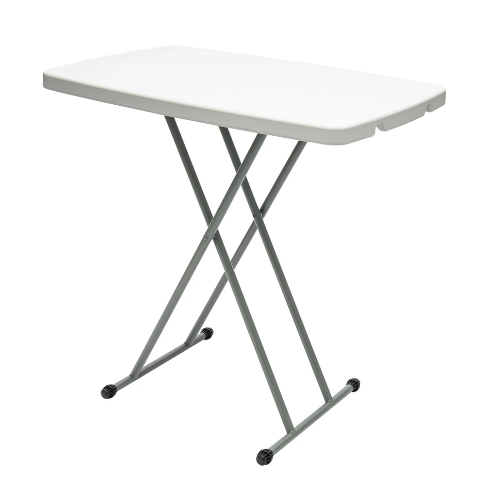 This folding laptop table is a game-changer! Super sturdy with a sleek white design, it holds up to 110lbs yet folds down slim for easy storage. The adjustable height is perfect for working from bed or couch—super convenient! Super easy to set up, and the smooth surface is great for meals or laptops. Lightweight but feels premium, and the compact size makes it ideal for small spaces. Highly recommend for anyone needing a versatile, space-saving table!