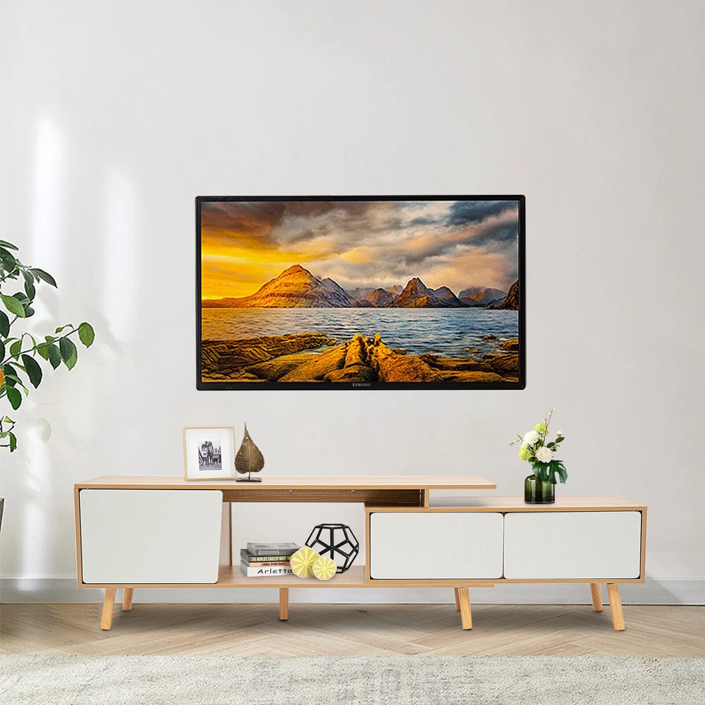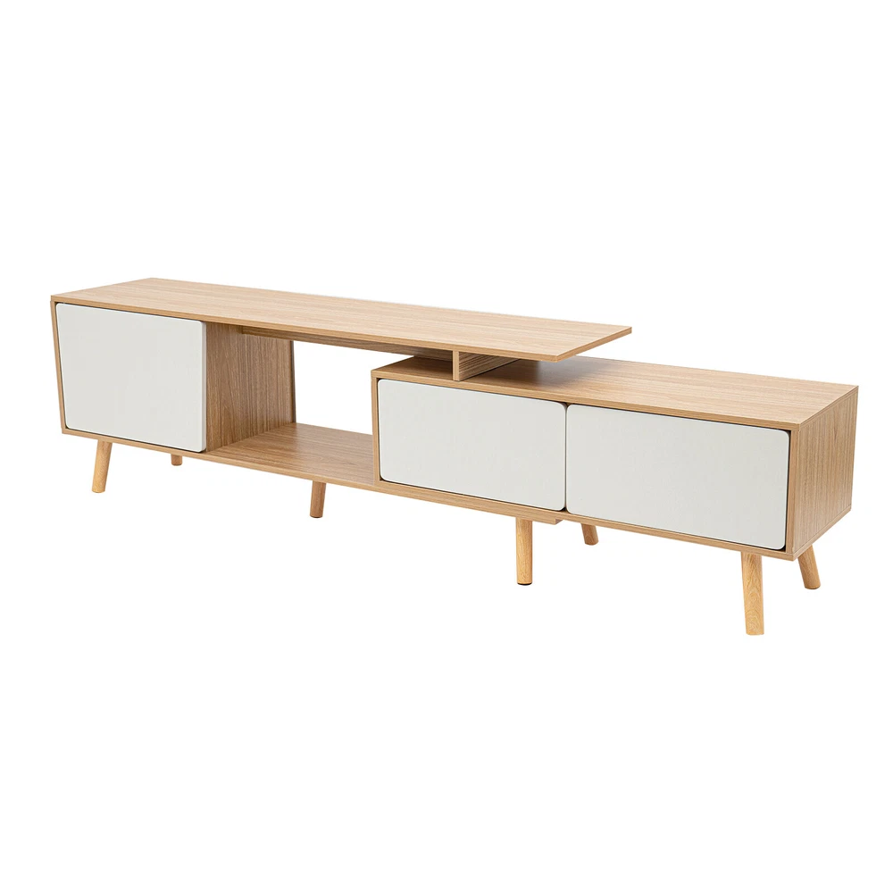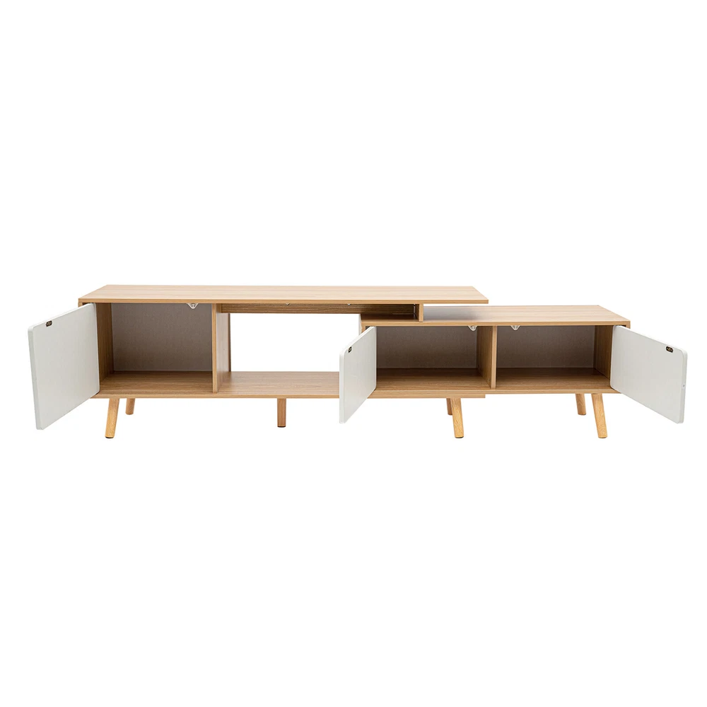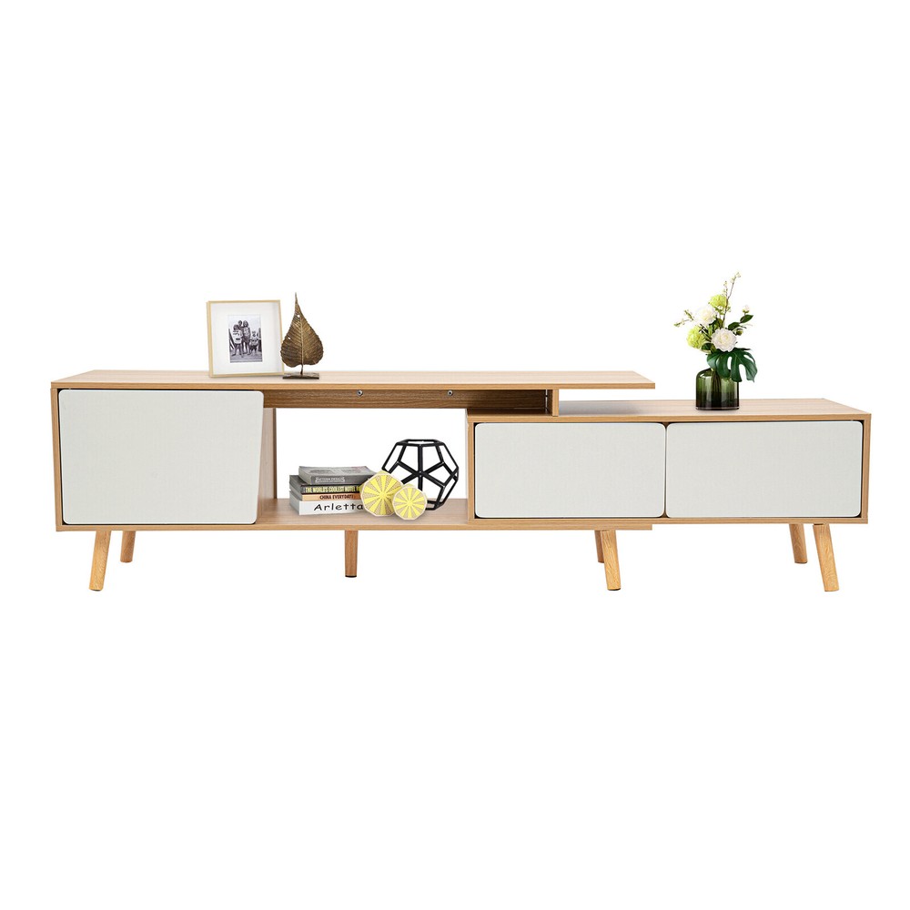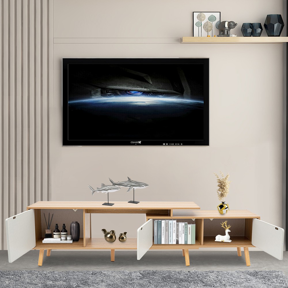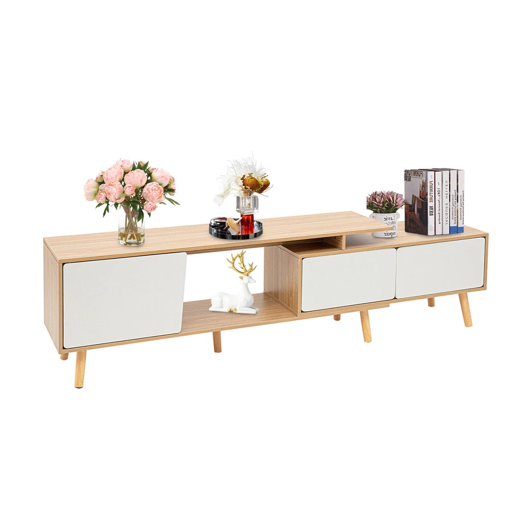 78'' Wood TV Cabinet Stand TV Stand with Doors Adjustable Shelves Console Table Description An expandable large-capacity TV cabinet not only helps you neatly store various items such as TV, books, and snacks but also can be adjusted at will according to the size of the room, which will bring you a more elegant and organized layout. Meanwhile, its unique appearance creates a stylish living room for you! Specification Material: MDF, Solid Wood Color: White, Wood Style: Modern Surface Treatment: Veneered Finished Room Type: Living Room, Bedroom Number of Compartments: 3 Assembly Required:Yes Shape: Retangular Adjustable Length: 120-200cm/ 47.2-78.7in Top Countertop Size: 120*30cm/ 47.2*11.8in Large Compartment Size: 40*31cm/ 15.7*12.2in Each Small Compartment Size: 39*23cm/ 15.4*9in Total Length of Two Small Compartment: 80cm/31.5in Distance from Stand to Ground: 12cm/ 4.7in Package Included 1* TV Stand All Needed Accessories Key Features Sturdy and Durable : Stable, impact-resistant high-quality MDF and multiple solid wood legs provide excellent durability and weight-bearing capacity for the product, which makes it serve you for a long time. Adjustable Length : The adjustable length (47.2-78.7 inches) of the product can adapt to different sizes of space. You can extend it to increase storage space, or shorten it to save space Storage Assistant : Two large open table tops, three door-compartments, and one open compartment provide you with enough storage space and allow sorting storage, which not only makes the layout neater but also easy to access. Beautiful Home Decoration : Classic white with unique wood color creates a warm Scandinavian style, allowing you to taste a life of style. Intimate Companionship : Whether in the morning or at night, this TV stand will be by your side, bringing warmth and hope to your dull life and recording the small beauty of life. Easy to Clean : The smooth surface, simple structure, and the right distance (4.7 inches from the floor) make it easy to clean. All you need to do is wipe the surface with a damp towel. Easy to Install : Simple structure and complete accessories make installation very easy, which will save you time and effort. Protective Packaging : Sturdy cardboard boxes and soft foam provide full protection for the product to avoid damage in transit. Customer Service : We aim to provide quality products and services. If you have any problems, please feel free to contact us. We will reply and solve the problem for you as soon as possible. Details Cabinet Doors : The thoughtful cabinet doors effectively prevent dust and water from entering, bringing full protection for books, headphones, cameras, etc. Rounded Edges : The rounded cabinet door edges not only leave a gap for easy opening of the cabinet door but also protect hands from scratches. Anti-slip Pads : The anti-slip pads at the bottom of the table legs not only increase stability but also prevent scratching the floor. Application This TV stand can be used to store media, electronic products, accessories, books, or decorations. It can be placed in the living room, bedroom, study, etc. Notes Before purchase, please confirm whether the size of the product matches the size of the room and TV. Please allow the slight color difference caused by the shooting light and 1-3cm error due to manual measurement. Please make sure you do not mind before you order. Payment Delivery details Terms of sales About us Contact us Payment We accept ebay payment 。 Fees such as import duties, taxes are not included in the item price or shipping costs. These charges are the buyer's responsibility. Delivery details Shipping: 2-9 working days to: USA Terms of sales We maintain high standards of excellence and strive for hundred percent customer satisfaction. Feedback is very important to us. We hope that you contact us immediately before you give neutral or negative feedback, so that we can address your concerns. It is impossible to address issues if we do not know about them! About us Your satis faction is our ultimate goal. We work hard to earn your trust and future business. Our certified technicians have tested each item before shipping. The unit comes with 1 year limited warranty on all manufacturing defects. a) If you receive a defective item, you may return it or ask for a discount. Please contact us within 14 days after you receive the package. b) What you returned must be intact and in its original packaging as re? u. Customer is responsible for shipping costs of the returned item. c) We will cover the cost of shipping back t with the shipping rate indicated in the registration page. We will send you a new unit or refund the full payment you paid. Thank you. Contact us Business Hour Business Hour: Monday To Friday: 8:30 AM to 5:00 PM (Beijing China time) Due to time zones, our reply to your questions may not be immediately. But within above working time, we will reply your email within 24 hours. If it's non-workdays, please kindly be patient and wait till Monday. Please contact us with ebay message. Please feel free to contact us if you have any questions. Monday To Friday: 8:30 AM to 5:00 PM (Beijing China time) Due to time zones, our reply to your questions may not be immediately. But within above working time, we will reply your email within 24 hours. If it's non-workdays, please kindly be patient and wait till Monday. Please contact us with ebay message. Please feel free to contact us if you have any questions.