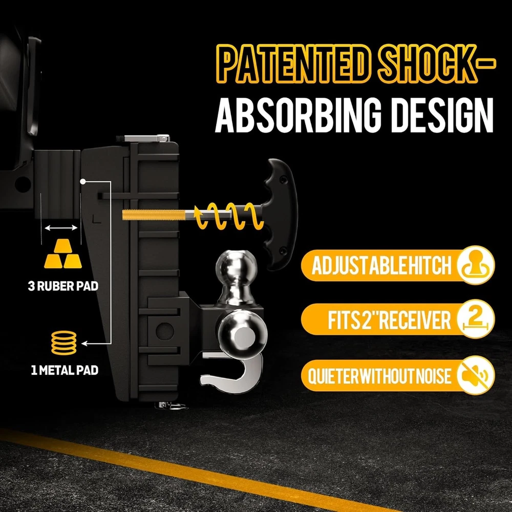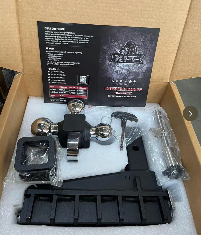 ITEM DESCRIPTION ⚠️ : This is not a brand-new product. However, it offers highly competitive prices. The accessories are complete, but there are some scratches. Material: Steel Ball Size: 1-7/8", 2" and 2-5/16" Adjustable Height: 8" Drop/ Rise Loading capacity: 1-7/8" Ball-9,500 lbs; 2 " Ball-12,000 lbs; 2-5/16" Ball -17,000 lbs Hook- 20,000 lbs Pin Hole Diameter: 5/8" Compatible with: Vehicles with 2-inch Hitch Mounts Package Includes: Adjustable Steel Tailer Shank 3 Balls ( 1-7/8" , 2" & 2-5/16") with Hook 1 Anti-theft Pins Locks With 2 Keys 1 Iron Pad And 3 Rubber Pads 1 Allen Key Wrench