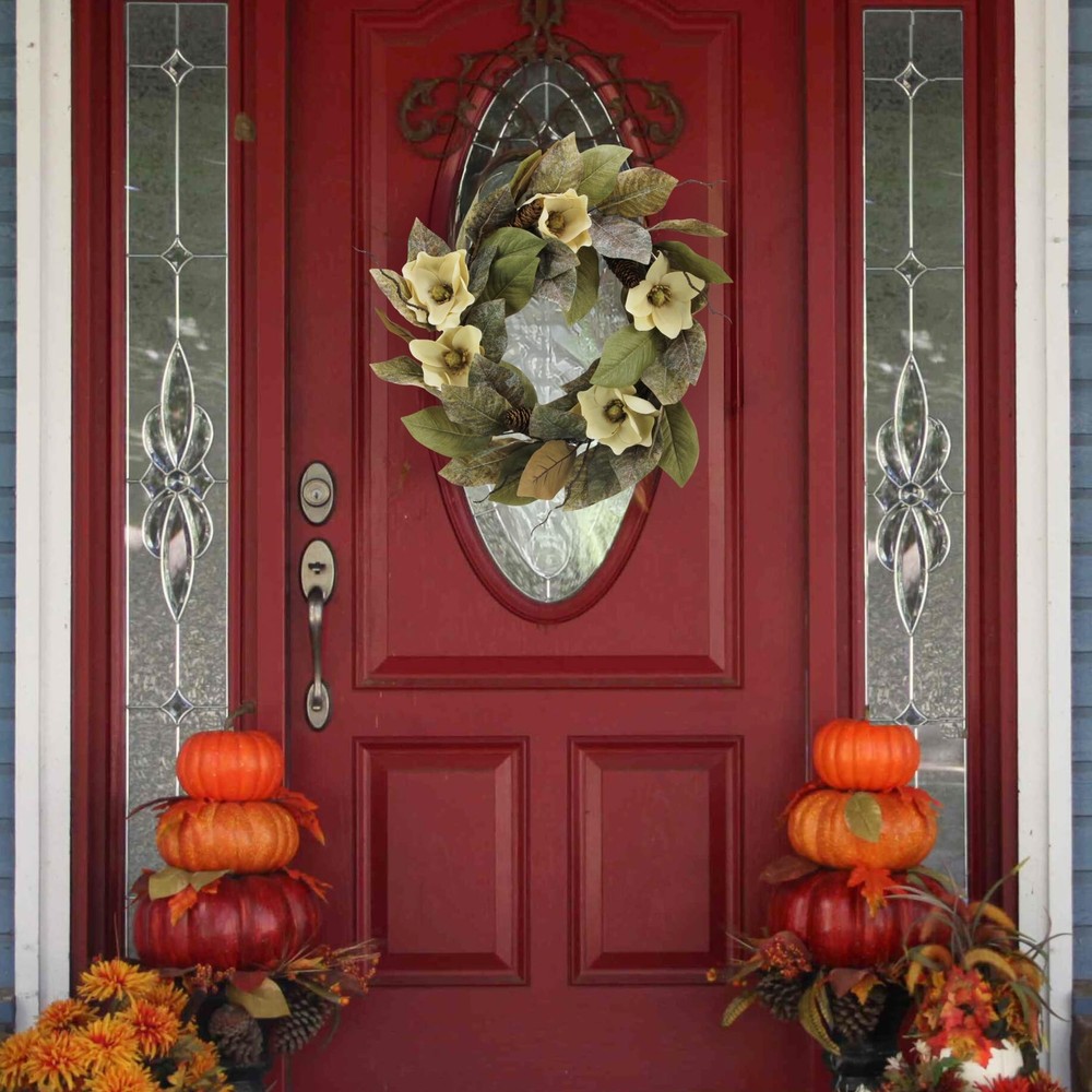 Admired By Nature 24" Magnolia Pine for Home Office Front Door Wreath, Wall Hanging Arrangement Decoration Product Details Color: Magnolia Pine White Brand: Admired By Nature MPN: GFW7061-NATURAL EAN: 8736180032921 UPC: Does not apply Color: Magnolia Pine White Brand: Admired By Nature Material: Polyester, Silk Mounting Type: Door Mount Shape: Round Item Weight: 1.3 Pounds Product Dimensions: 5"D x 20"W x 22"H Seasons: fall, winter, summer Occasion: wedding Manufacturer: Admired By Nature Color: Magnolia Pine White Brand: Admired By Nature Material: Polyester, Silk Mounting Type: Door Mount Shape: Round Item Weight: 1.3 Pounds Product Dimensions: 5"D x 20"W x 22"H Seasons: fall, winter, summer Occasion: wedding Manufacturer: Admired By Nature Global Trade Identification Number: 21 Item Weight: 1.3 pounds Country of Origin: China Item model number: GFW7061-NATURAL Is Discontinued By Manufacturer: No Diameter: 24 Inches Fabric Type: Polyester Assembly required: No Number of pieces: 1 Batteries required: No Included Components: Admired By Nature GFW7061-NATURAL Magnolia Wreath Pine For Home Office Front Door Wreath, Wall Hanging Arrangement Decoration, 24", Natural Import: Imported Polyester Imported [Classy Fall Decor] A handmade fall wreath crafted with magnolia green brown leaves and artificial flowers. It has a natural look and feel, you will not believe its faux. [Material] The corn husk fall door hanging wreaths for front door fall is made of high-quality material. Widely used as halloween witch wreath, thanksgiving wreaths, holiday wreaths for front door and farmhouse wall decor. [Occasion] This fall wall decor for the home wreath is perfect for decorating your fall front door, window fall decor, wall, fireplace, fall cabin decor, or farmhouse front porch decor. Also as a gift for your family and friends [Note] Indoor use. If displayed outdoors the artificial fall wreaths for front door should be under cover to avoid rain, snow and, not suitable for excessive sunlight exposure. No assembly is required. [Size] 1 unit of fall door wreaths for front door. Item fully expanded size: 24"H x 24"W x 5.5"D. Item compressed size: 20"H x 20"W x 6"D. Item comes compressed, primping and fluffing are required to match on the image shown. Beautiful 24-inch classy fall decor wreaths for front door is a combination of artificial magnolia green brown leaves and flowers a handmade fall wreath that looks lifelike appearance! This fall wreath front door is uplifting and is perfect for fall autumn, halloween, Thanksgiving or holiday creating a romantic fall joy and its seasonal style for a home office or farmhouse. It is just a simple way to embrace fall season, and perfect accent piece for fall decor for door, fall decorations porch, window, home, walls, enterway, fireplace mantel decor, autumn-themed parties, farmhouse and office fall door decoration. Also as a gift for your family and friends. Recommended for indoor use, but it is possible to display the autumn wreaths for front door outside with covered outdoor locations. Size 24 inch L x 24 inch H x 5.5 inch D. Item comes compressed, primping and fluffing required to match the image shown. No assembly is required. Actual color/finish may vary slightly from screen display.