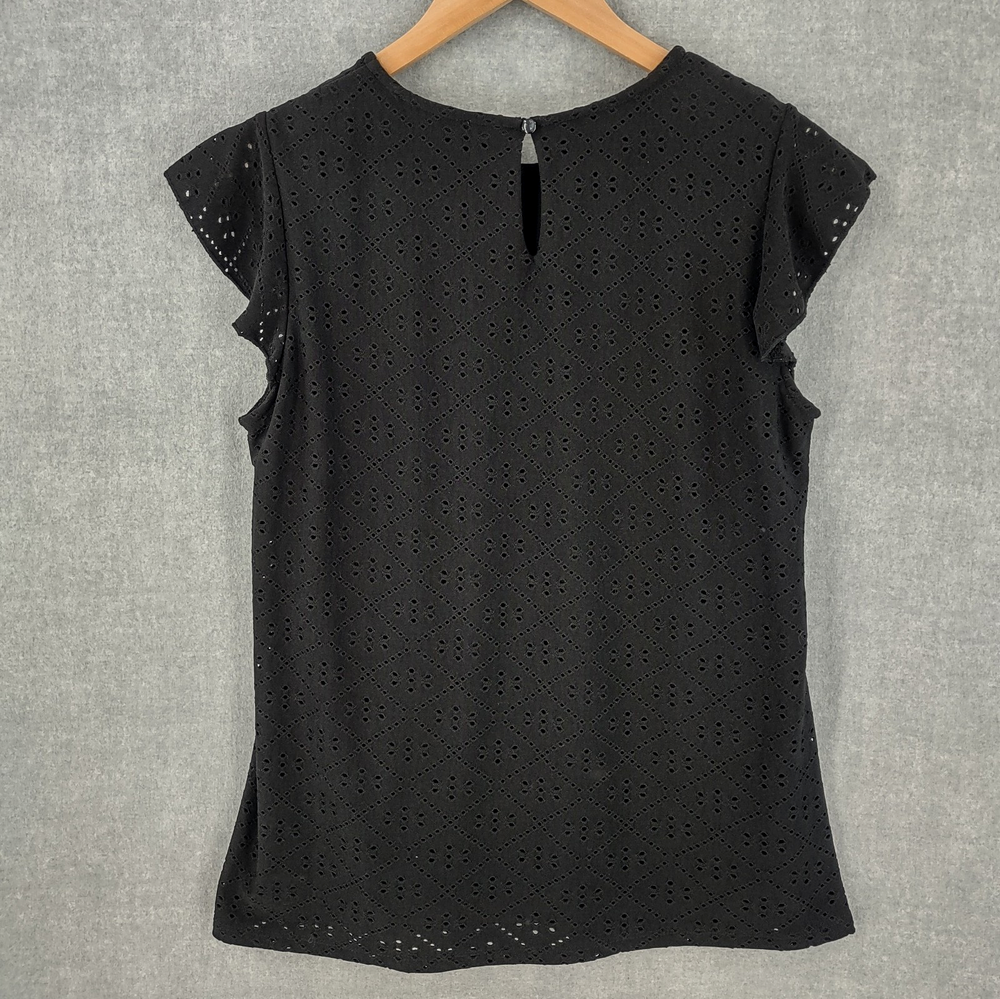 Welcome to Aspen Crossing, your destination for modern western bohemian style reflecting the rugged beauty of our American West Adrianna Papell Top Womens Small Black Bohemian Eyelet Ruffle Cap Sleeve Tunic Lined 26" LENGTH: Measured from the top of the shoulder to the hem. 18.5" CHEST WIDTH: Underarm to underarm, measured flat from left to right. It is always best to compare the measurements above with a top that fits you comfortably. CONDITION - Good pre-owned condition. All items are cleaned per EBAY standards. Not spot treated. See the photo gallery to view this items measurements and condition. SHIPPED - USPS First Class Mail unless item weight requires priority mail. RETURNS accepted, must be returned within 30 days in original condition to receive a full refund. SHIPPING AND HANDLING We ship all packages within five business days Monday through Friday except Holidays. Consolidated shipping is available for multiple purchases. Thank you for helping our planet and buying previously owned and loved items. I am grateful for your business. Enjoy! Check out our eBay store and follow us. There are new listings daily. CUSTOM SKU: Disclaimer: While we make every effort to capture the most accurate depiction of every item when photographing, colors may vary from screen display to in person therefore we cannot guarantee exact shade on any item. Message us if you have questions.