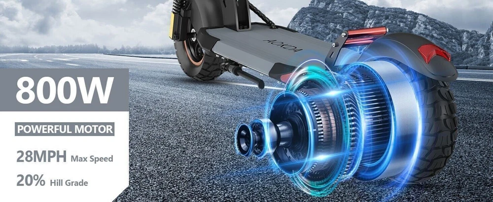 New Way to Across the City Freely The AOKDA electric scooter for adults which is powered by 48V/10Ah battery, makes it easier for you to complete daily travel. One charge is enough for you to ride for 20 miles under specific conditions. Max load 265 lbs. Let You Ride As You Want, Easy to Drive Our e-scooter has three different riding modes (Eco: 15Mph, D: 22Mph, S: 28Mph), you can choose the most suitable mode for you according to your needs, and the strong 800W brushless motor allows you ride speed up to 28Mph. Comfortable Riding Experiences, Enjoy Every Trip Our electric scooter for adult adopts front and rear wheel suspension system and 10-inch pneumatic tires, which means you can enjoy a smoother and more comfortable riding experience, even on rough roads. Make Riding More Safety Our e-scooter for adult is not only equipped with super bright headlight & taillight, but also has a side ambient light, which improves the safety of night riding and allows you to travel with peace of mind at any time. The perfect front & rear dual brakes and electronic braking system allow you to stop whenever you want. Easy to Fold & Carry You can fold the electric scooter for adults with two-steps only in a few seconds for carrying and storage. The unfolded size: 45.28"L x 23.62"W x 47.24"H. The folded size is 45.28"L x 8.66"W x 17.72"H, easy to put in your garage or office. Buy with Confidence We have always focused on the quality and technical improvement of electric scooters. Our adult electric scooter is designed to be the most sturdy and powerful electric scooter which will quickly become your favorite commuting or outdoor travel companion. We offer 180-days warranty for different parts, contact us to get fast and professional service. Important Note The max speed and max range per full charged vary based on several factors, including: rider weight, riding surface, incline, ambient temperature, battery level, riding style (stop/start vs cruising), etc. Q&A: How fast can the electric scooter go? Top Speed: 28MPH / 45KMPH (the speed greatly depends on the rider weight, road condition, riding mode...etc) How long do the electric scooter last? Well, with proper care and maintenance, this e-scooter can last anywhere more than 5 years or even longer. What are the benefits of this off road electric scooter? This off road electric scooters with high power motor, fast, portable, and with detachable seat. Not only good for off road riding, but also good for urban commuting. It also save you money on gas because they can be charged quickly. Do this electric scooter work in the rain? Well, it support IP6 waterproof. It's OK to work in small rain, but not recommend in heavy rain. And the pedal of the e scooter cannot be submerged in water. Or the battery and controller will be damaged.