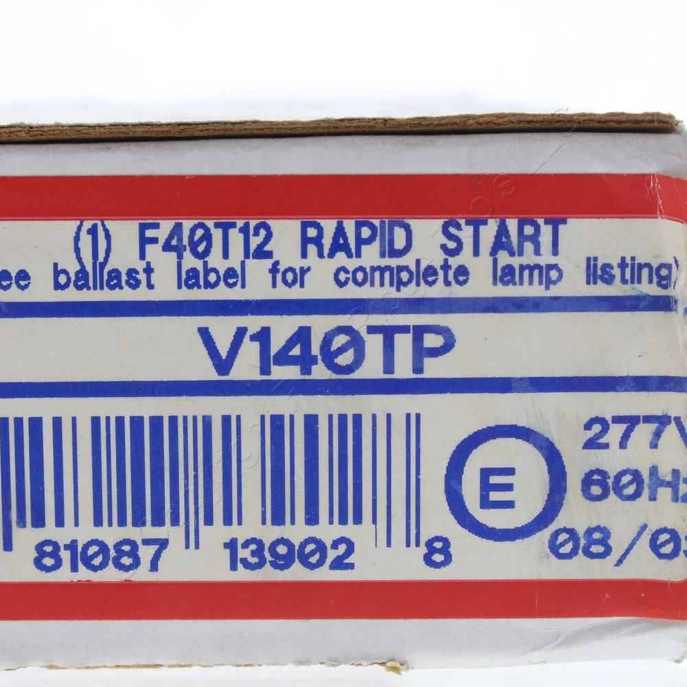 Fruit Ridge Tools, LLC Our eBay Store Contact Us Add to Favorite Sellers Advance 50 Watt 277 Volt 6-1/2" Length Magnetic Rapid Ballast V140TP Advance #V140TP magnetic rapid ballast. This product features a voltage rating of 277 volts and a input of 58 Watts. It has a length of 6-1/2" and a minumum starting temperature of 60 degrees F. Each is individually packaged; packaging may differ from photos. Features include: Voltage Rating: 277V Minimum Starting Temp: 60 F Wattage Input: 50W Length: 6-1/2" This is New Old Stock and is returnable for any reason. (SKU # ADVV140TP-EA; Weight: 3.5500 lbs.)