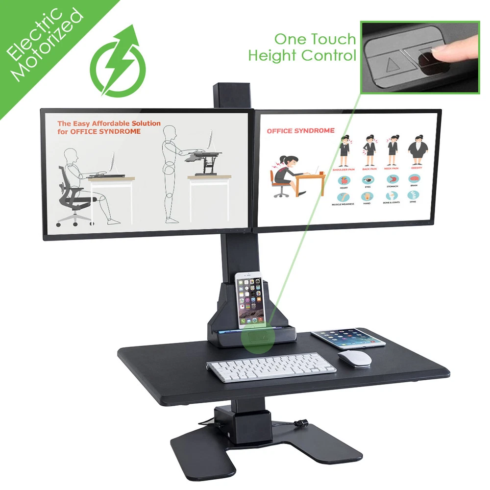 Electric Motorized Height Adjustable Standing Desk Converter About Us Shipping Returns & Policies FAQ Home & Garden Kids & Babies Sports & Outdoor Health & Fitness Business & Industrial AdvanceUp Electric Auto Standing Desk Converter Riser with Dual Monitor Mount Product Details 44 LB CAPACITY: Electric motorized with 44LB Capacity, Equipped with Strong Electric Motorized Lift System, it goes up and down in a touch of a button. ERGONOMIC HEIGHT RANGE: Wide adjustable height range(1.4"-21"), fits most desks and most people. Curved smooth edge for extra comfort for arms and wrists. DUAL MONITOR MOUNT: Universal 75x75mm and 100x100mm monitor mounts, and most monitors up to 32 inches. Flexible monitor mounts with tilt, swivel and rotation ability. EASY HEIGHT ADJUST: By just pushing a button, the converter goes up and down with no hassle, for changing your sitting and standing position during work. READY TO GO: Very minimal assembly out of the box. Stable large free-standing base makes it does not require any modifications to your desk, instantly transforms desks into a sit-stand workstation. Brand AdvanceUp Condition NEW Color Black - Electric 1-tier Size Electric AdvanceUp Electric Automatic Standing Desk Converter Riser with Dual Monitor Mount The AdvanceUp Electric Motorized Height Adjustable Sit-Stand Workstation, allows you to instantly convert your office desk into ergonomic desktop -- With just a touch of your finger. The stand up desk helps you maintain a healthier balance of sitting and standing throughout the long work day. This Stylish, Functional, and Affordable solution allows you instantly enjoy the relieves on you back and neck. Experts agree that sitting 6+ hours a day significantly increases the chances of disease ranging from diabetes, cardiovascular diseases, and even CANCER! Standing periodically throughout the day keeps the blood flowing and helps you stay awake and alert. This is an invaluable investment for your health and well being. The AdvanceUp Ergonomic Desk is equipped with an electric motorized lift system that allows you to switch between sitting and standing in seconds, by just pressing a button. With the 1.4" to 21" height adjustable range, you can instantly switch your sit or stand without any interruptions. Its ultra slim design, with 44 lbs. max load capacity and the 28.3" X 18.9" work surface, makes it perfectly accommodated your laptop, keyboard, mouse and more! Features Sturdy Steel Constructed Base with a Coated Finish Laminated MDF Desktop Built-In Cable Management Height adjusts from 1.4" to 21" , Electric Motorized Lift System Dual Free-tilting and 360° rotation Monitor Mounts, design for multiple monitor viewing angles, suggested screen size 13"-23" Large Work Surface, Designed to fit most desks and cubicles Specification Brand: AdvanceUp Color: Black Height Range: 1.4" to 21" Work surface: 28.3" X 18.9" Weigh Capacity: 44 lbs. Monitor mount tilt range: +45° to -45° Monitor mount swivel range: +30° to -30° Monitor rotation: +180° to -180° Additional Images CUSTOMER SATISFACTION - || - FAST & FREE SHIPPING - || - SAME DAY HANDLING Shipping & Will Call We proudly offer FREE upgraded shipping to 1 to 3-business day expedited Shipping and same day handling!!! Same Day handling on orders received before 2 P.M. local time. Orders are shipped out via UPS or USPS (Priority Shipping) with tracking numbers. Once an order is shipped, we will forward the tracking number & update your eBay order. We ship to the lower 48 states only. All products are shipped from our warehouses in the U.S. Most of our items have a picture and/or description of the contents on the box. Please contact us if you would like for us to cover it. Any fees associated with address change, cancelled orders or undeliverable items is the responsibility of the buyer. We pride ourselves on our ability to provide same day shipping on most of our item, that is why is crucial for you to message us if there are any changes or cancellations on your order. It is also important to note the estimate time and date of delivery to avoid excess delivery charges. To coordinate a successful delivery please contact the carrier. Will Call - We offer local pick up between the hours of 9am and 4:30 pm PST. Please message us to arrange an appointment. Payment We accept PayPal. Visa, Mastercard, American Express, Discover, or Paypal are all accepted via eBay Secure Checkout. Payment is expected within 7 days of auction close. Unpaid Items will be forfeited per eBay. Immediate payment needs to be processed for items with Add to Cart option so that any promotional discounts can be applied to your order immediately. Sales Tax will be applied for orders shipped within the state of California. We give positive feedback immediately after payment is received. We would appreciate a positive feedback as much as you. If for any reason a problem should arise, please message us prior to leaving feedback and we will gladly assist you. Returns & Policies We will accept returns for any reason on brand new and unused items with 30 days. Returned merchandise must be in 100% brand new, re-sellable condition, and in the original packaging (box). Upon receipt of the returned item, we will inspect it to ensure that it meets our criteria of 'brand new & re-sellable' - items not meeting this criteria will be issued a partial refund or be denied completely. All returns are subjected to a restocking fee of 10% or more, depending on the condition of your return. Generally, if the item has been tried, assembled, or utilized the item will not be accepted for a return. Defective merchandise can be returned for a full refund however, Crosslinks will require photos (or video) of the defect prior to authorizing the return. For damaged/defective/wrong items, please message us and we'll be happy to walk you through our return process. Crosslinks will cover all shipping charges in these situations. However, we must be notified of damaged/