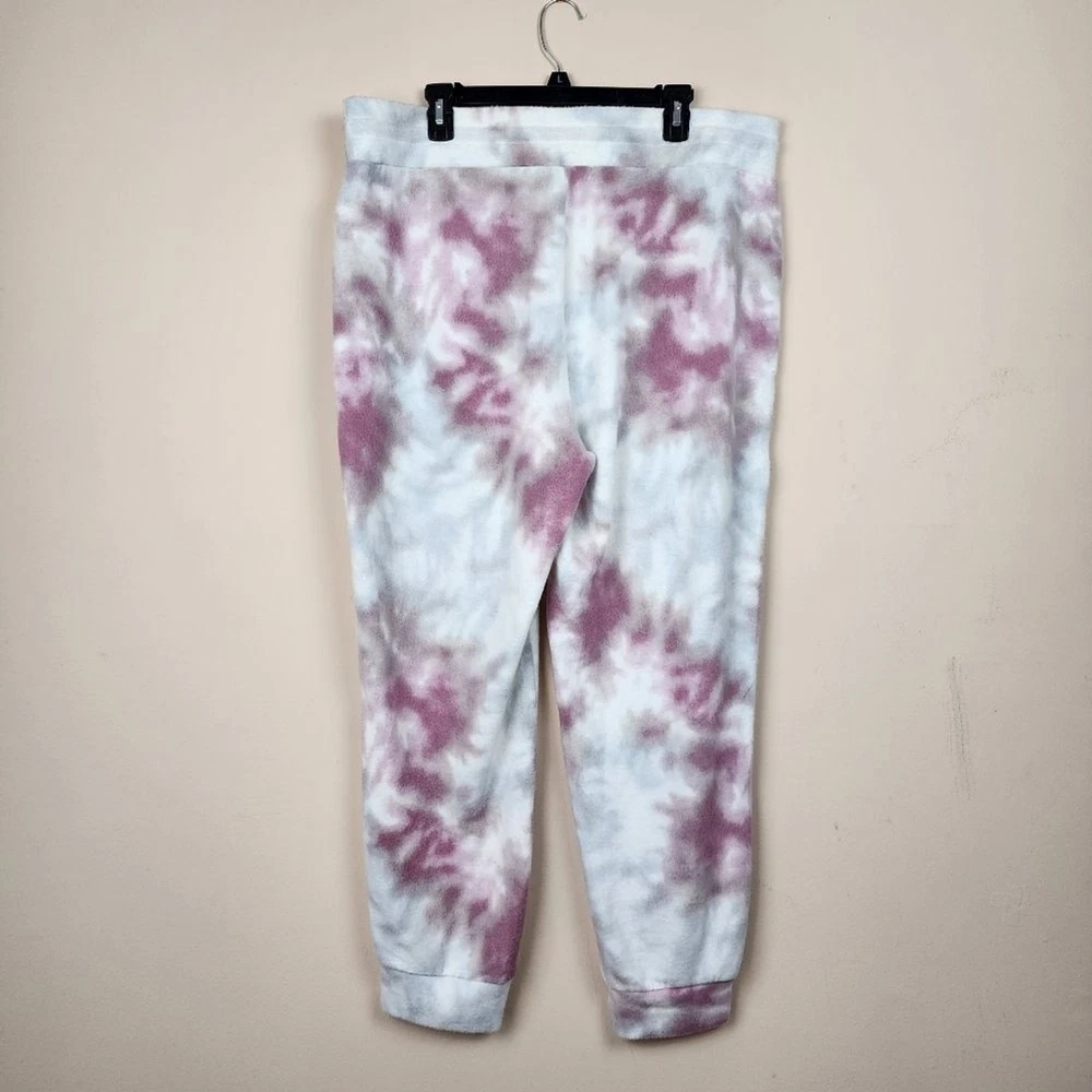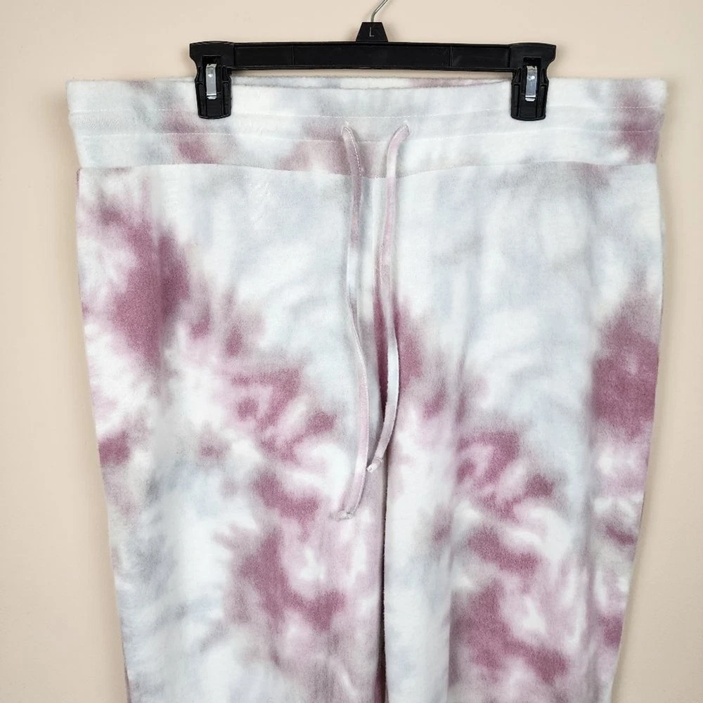 Adyson Parker Tie Dye Fleece Joggers In Plum Juice Combo Plus - Size 2X, approx. measurements in pics - Elastic Waist with drawstring - No pockets - White, Purple Tie Dye - 63% Polyester, 34% Rayon, 3% Spandex - Pre-owned, unworn, still with tag Shipping Same or Next Business Day! Thanks for watching! Cozy, brushed-fleece, joggers, tie-dye, loungewear, comfort, comfy pants, Pj's, pajama bottom, Pants, Sleepwear, Casual, lounge wear, athletic, athleisure, comfortable, comfy, cozy, warm, boho, bohemian hippie casual Introducing the Adyson Parker Size 2X Tie Dye Fleece Joggers in Plum Juice Combo Plus, a cozy and stylish addition to your sleepwear collection. These pajama pants feature a tie closure and are made of soft fleece material that will keep you warm and comfortable all night long. With a vibrant purple tie-dye pattern, these joggers are perfect for women who love to add a pop of color to their wardrobe. The brand name, Adyson Parker, guarantees quality and style. These joggers are suitable for plus-size women and are perfect for relaxing at home or sleeping in.
