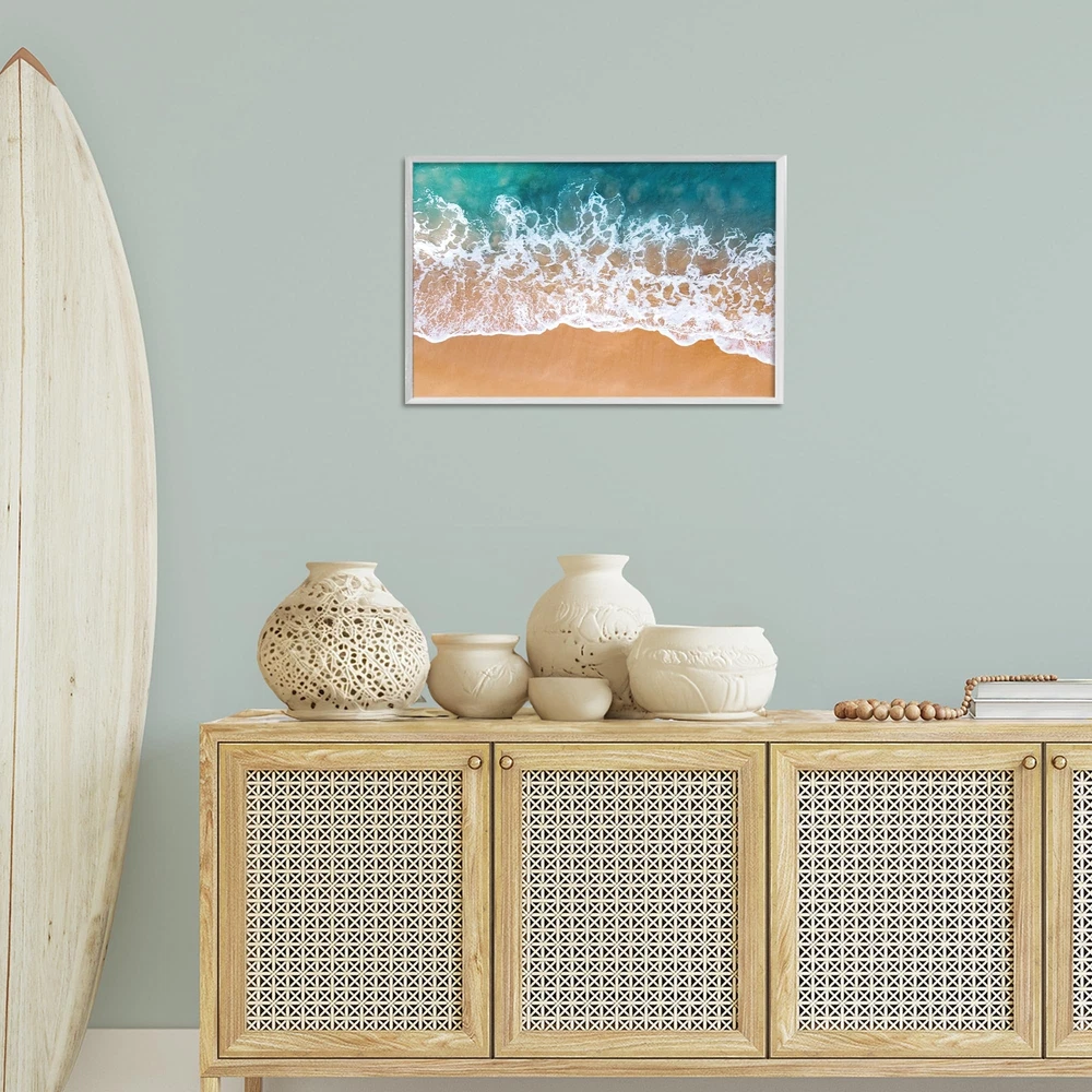 Add dimension to any room with our textured Framed Giclee Artwork. Our framed artwork is securely mounted into a 1.5-inch thick wood grain frame and ready to hang. Frames are available in three alluring styles: black, gray farmhouse and white. In addition, you should check out our oversized options if you want a statement piece. Wall Art is made in the USA. Dimensions: 24 x 1.5 x 16 Framed Framed Giclee Products are available in the sizes 18"x12", 24"x16" or 30"x20". All Framed Giclee Products have a 1.5" Depth. Wall Art is Ready to Hang with Hardware Free Hanging. No installation required. For Easy Set Up Lean or Layer Artwork on Shelf or Against Wall. Our giclée prints are carefully mounted on a durable MDF backing, and then perfectly finished in a 1.5 inch thick woodgrain frame. Mounted frame colors include black, gray farmhouse and white. Made In USA. Artwork Relates To: Beach, Nautical, Summer, Shore, Coast, Ocean Design by Nataly White