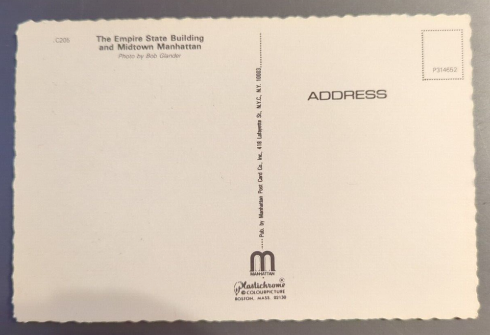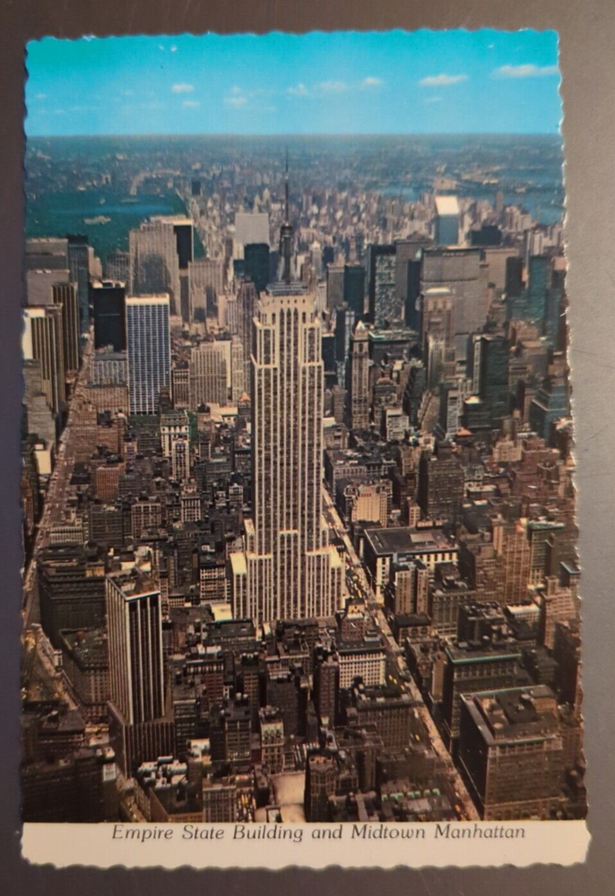 VTG Continental Postcard Aerial View of the Empire State Building NY Manhattan. There may be wear on the edges or a bent or torn corner, staining or writing on the card, creasing, or the card may have a cancellation mark. Most of the postcards I sell are 50 to 100+ years old and will never be perfect. Please examine the photos carefully for condition information. All postcards and greeting cards with a value of less than $20 are shipped via eBay Standard Envelope with a 2 mm postcard sleeve and a piece of cardstock on either side, taped closed with masking tape and placed in a heavy cardboard mailer. Postcards with a value of more than $20 are sent Ground Advantage in a 2 mm postcard sleeve, sandwiched between cardboard and shipped in a padded polybag. Tracking is provided with both methods.