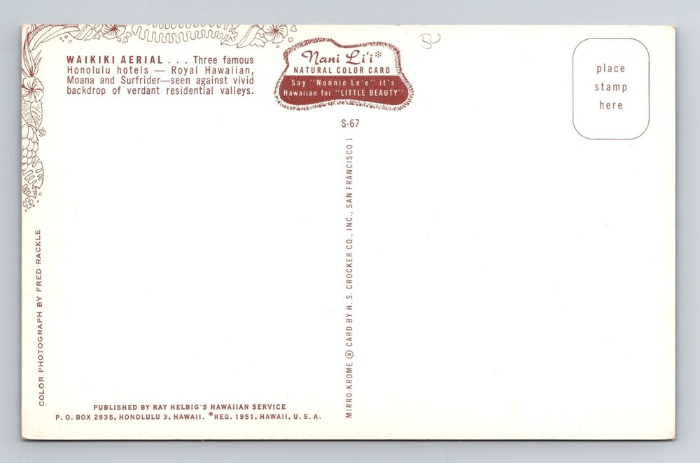 Subject: Cities & Towns Unit of Sale: Single Unit Era: Vintage Theme: Cities & Towns City: Waikiki Type: Printed (Lithograph) Country: USA Original/Licensed Reprint: Original Country/Region of Manufacture: Unknown Material: Paper Postage Condition: Unposted Size: Standard (5.5 x 3.5 in) Region: Hawaii