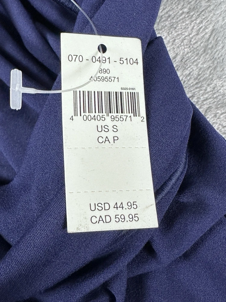 These new with tags Navy Blue leggings are in excellent condition. They are the 7/8 legging hi-rise and are soft and have stretch for awesome comfort. The front waist has a pretty crossover design in the waistband. They are labeled as a Size Small and have a 24.5” inseam. Approximate Measurements: Inseam - 24.5” Waist - 18” Rise - 8.5” Bottom ankle hem across - 4” ***Measurements can be seen in photos.