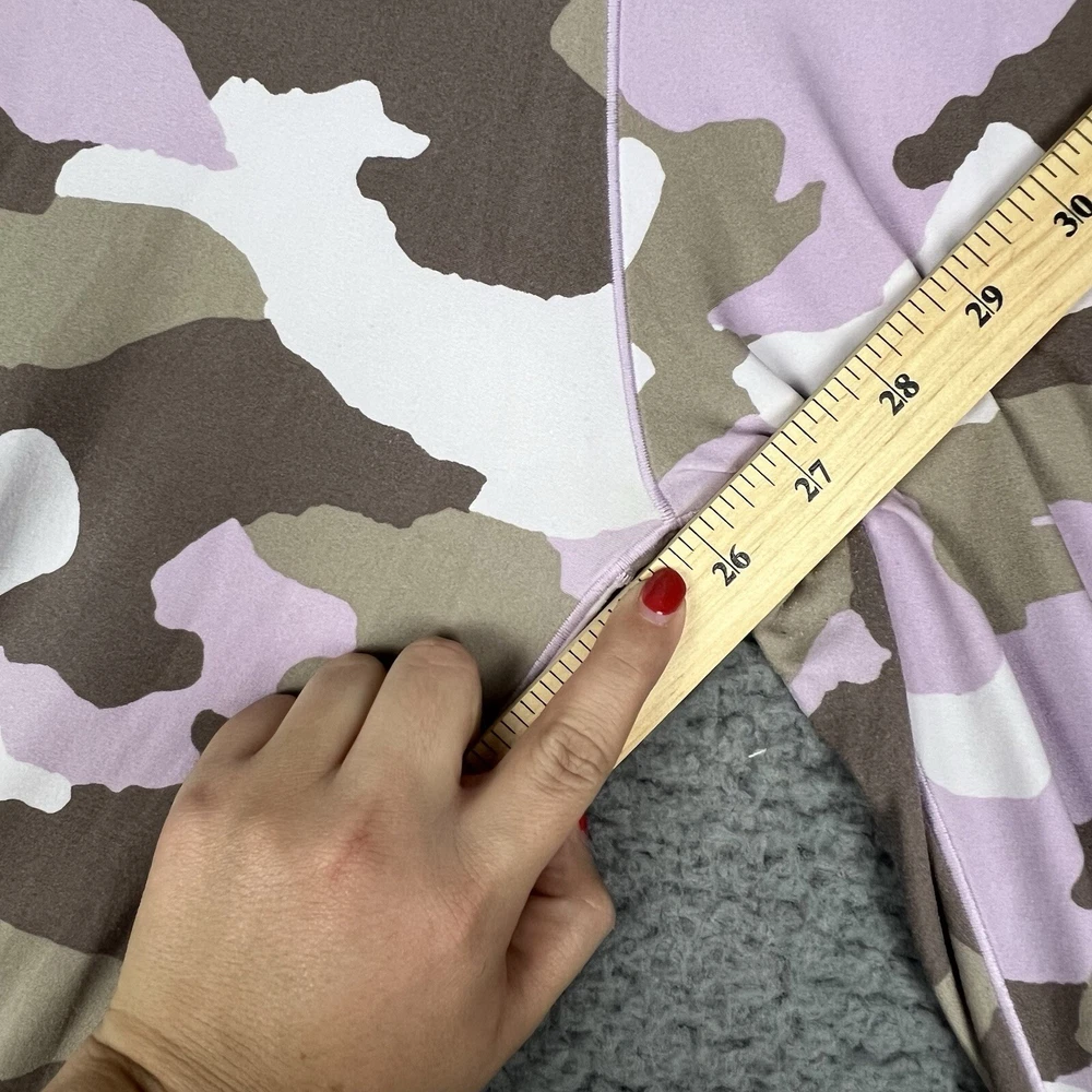 NOTE: there is some pilling, but still in excellent condition. Elevate your workout wardrobe with these Offline by Aerie Real Me 7/8 Leggings in high-rise purple camo and green camo. Designed for women who love a blend of style and comfort, these leggings come in size XL and are perfect for gym & training, yoga, cycling, or CrossFit. The blended fabric of polyester, spandex, and nylon makes them lightweight, stretchy, and comfortable, while the hi-rise waistband provides a snug fit that flattens the stomach. The leggings feature a colorful and bold camouflage pattern that adds a touch of fun to your activewear collection. They are machine washable and easy to care for. With the right amount of stretch and comfort, these leggings are perfect for all seasons, whether it's winter, summer, fall, or spring. Add these leggings to your collection and get ready to hit the gym in style!