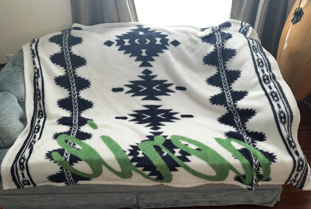 Aerie Throw Fleece Blanket Southwest Cream Blue Green Super Soft 62 x 42 inches
