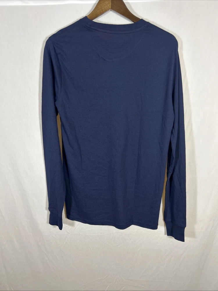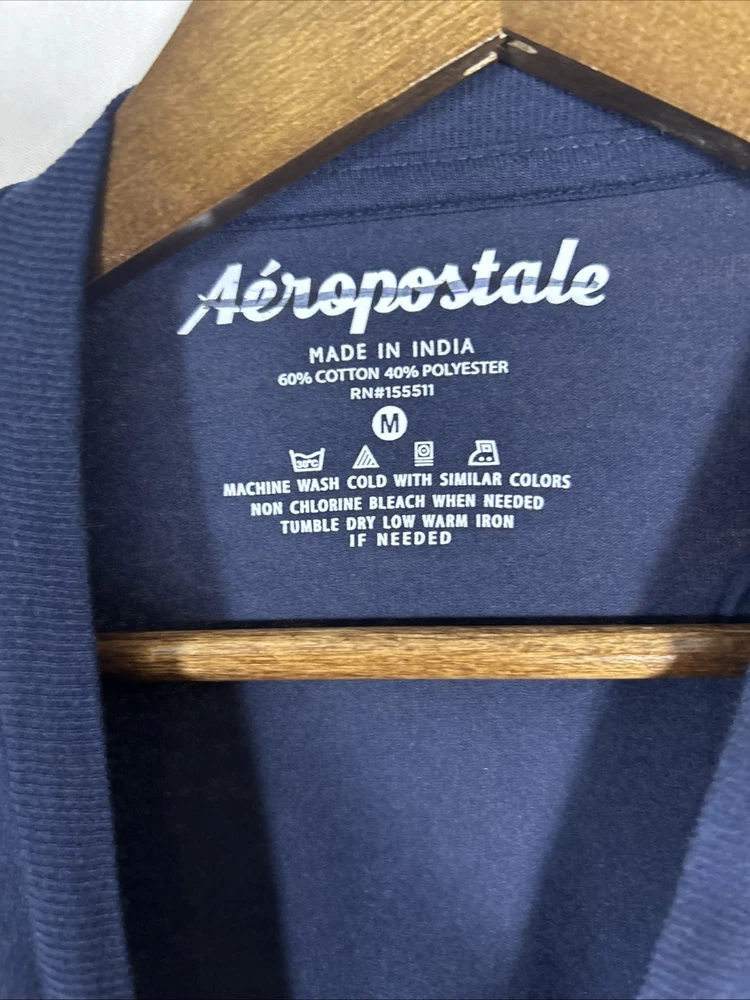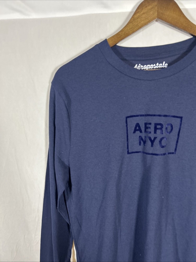 Aeropostale men’s long sleeve graphic T- shirt in blue featuring the classic AERO NYC logo on the chest. This casual everyday shirt offers a comfortable lightweight feel and a clean minimalist graphic design that pairs easily with jeans, joggers, or shorts. Made from a soft cotton- blend fabric, this long sleeve tee works well for layering in cooler weather or wearing on its own for casual daily wear. The classic crew neck and regular fit provide a timeless style suitable for school, casual outings, or relaxed weekends. Condition New without tags. Specifications Brand: Aeropostale Gender: Men’s Size: Medium Color: Blue Material: 60% Cotton / 40% Polyester Sleeve Length: Long Sleeve Neckline: Crew Neck Graphic: AERO NYC Chest Logo Fit: Regular Country of Manufacture: Made in India Features Soft cotton blend fabric for comfort Classic crew neck long sleeve design AERO NYC front graphic logo Lightweight everyday casual shirt Easy to pair with jeans, joggers, or shorts Shipping Ships within 2 business days Carefully packaged Tracking uploaded promptly Smoke- free storage environment Combined shipping available if applicable Notes Photos are representative. Serial numbers and packaging may vary. Item will be identical model and condition.