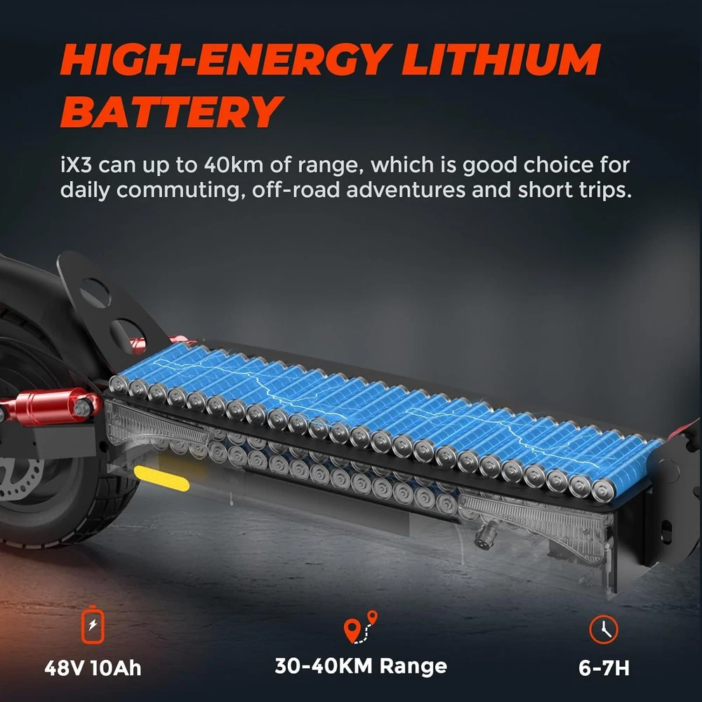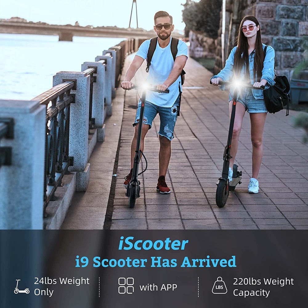 iScooter i9 Description: SMART APP CONTROLLER - Download the KCQ APP (iPhone & Android) to connect your e-scooter via Bluetooth. You can control via APP: lock/unlock, light on/off, gears, start mode (zero start or non-zero start), set maximum speed, cruise control, etc. This APP is a very smart software that can help you easily and multifunctionally to use the electric scooter. POWERFUL MOTOR & LONG BATTERY LIFE - 350W electric scooter for adult allows for speeds up to 15.5mph, and attacks 15% climbing hills with speed and comfort. Cruise Control System Design. High-capacity battery (36V/7.5AH) with a travel range of 12-18miles. Fully charge for 4-6 hours. Max load of 264 lbs. (The data may vary depending on riding conditions, rider weight and terrain. The regenerative battery helps recycle energy from riding and provides a longer range. SAFETY DESIGN : iScooter i9 scooter electric features warning taillights and ultra-bright headlights with a range of up to 30 meters to enhance safety at night. The double braking system features disc braking and EABS regenerative anti-lock braking. 8.5" Honeycomb Solid tire make riding comfortable, even on a rough road or bumpy terrain. FOLDING& PORTABLE DESIGN - One-step folding operation in 3 seconds. electric scooter is a perfect choice for giving us another way to get around, you can commute across their cities, campuses, and offices with ease. Besides, it can be easily folded up, which is small enough to fit in a car trunk. That provides you and your family convenience and happiness in daily life, save your time as well, and makes your life more wonderful with 1 Scooter electric. Specification: Electric Scooter for Ages 14 and up If you are looking for one special gifts for your childs or friends, We think that our i9 electric scooter with light-up deck will be the perfect one! Folding: 42''x17"x19" unfolding: 42''x17''x44'' Motor: 350 Watt Battery: 36V 7.5Ah Charge Time: 4-6 Hours 2 Speed: 9mph/15.5 mph Long Range: 12-18.6 miles Tire: 8.5'' Honeycomb Solid tire Brake: Disc Brake & electric Brake Light: Headlight & Taillight Cruise Control System Water Rating: IP54 Waterproof Tips: Safety first! Always remember to wear helmets and knee pads iScooter iX3 Description iScooter Unisex 800W Motorized scooter Adult 10-25 mph 10 inch off-road tires are collapsible. The latest folding Motorized scooter is designed to let you travel in style, and is an interesting and environmentally friendly way to explore the scenery! This Motorized scooter is equipped with an upgraded 800W high-speed powerful motor, with a maximum speed of 25 miles per hour, a range of 30-40km, and a maximum load of 265 pounds. You can freely switch between two cycling modes, which is both cool and convenient. The excellent braking system enables faster brake response and improves safety during cycling. The front and rear shock absorbers provide maximum driving comfort. The Motorized scooter can quickly fold by driving folding with feet for 1 second. After folding, the iScooter Motorized scooter can be carried by one hand, making it a perfect commuting companion. Features: 🌞 Equipped with an 800w motor with a maximum speed of 25-28 miles per hour, a range of 18-25 miles, and a maximum load of 330 pounds. 🌞 Front and rear dual disc brakes, quick response braking is also safer for emergency braking. 🌞 Equipped with soft seats and dual shock absorption system, making your driving more comfortable. 🌞 It has a 1-second foot driven folding function, making it easy to carry and store. 🌞 Cruise control allows you to relax even more, with the option to choose 3-speed mode. 🌞 A clear LCD display screen displays the battery, headlights, cruise indicator light, gear indicator light, and total mileage to meet all your needs. 🌞 The multifunctional buttons can easily change speed, lighting, and cruise mode. 🌞 Easily conquer the hills. About this item 【High Cost-effective Electric Scooters】 iX3 Foldable electric scooter comes with a 48V/10h battery up to 20-25 miles cruising range. This E-scooter equipped with 800W powerful brushless motor providing for a convenient and comfortable riding. It is suitable for commuting to work, shopping in supermarkets, mountain cross-country and short traveling. 【10 Inch Off Road Pneumatic Tubeless Tires】 The iScooter iX3 comes with upgraded 10 Inch off-road pneumatic tubeless tires that are designed to handle many terrains from asphalt road to dirt roads. Combined with front and rear dual shock absorbents, electric scooter iX3 offers a excellent riding experience, especially for suburban commuting. You just need to pour in the tire repair fluid if your tire accidentally punctures. 【Made to Move - Comfortable Commuting】 Upgraded rated 800 Watt Motor provides provides high torque but maintains a low power consumption, which can reach 25MPH top speed and max 20-25° climbing slope. You can set up the top speed, custom riding mode and lock your E-Scooter through the APP 'MiniRobot'. 【Foldable & Adjustable Handlebar Height】 iX3 electric scooter adults weighs 51 lbs and can carry a maximum load of 264lbs. It is one-piece pre-installation, no need to install when you received. The handlebar height can be adjusted 44.5-52.8 Inch depends on your need. Just 3 steps you can fold it easily. Easy to carry it on public transportation or store it in your car to go wherever you want. 【iScooter - Buy with Confidence】 iScooter, a brand you can trust. We have always focused on the quality and technical improvement of electric scooters. Choose us, our E-scooter will become your favorite commuting or outdoor travel companion. iScooter offer 360-days or 180-days warranty for different parts, contact us to get fast and professional service. 【Warm Tips 】To provide you a good riding performance, please fully charge the electric scooter before the first ride. Picture Model i9 iX3 Motor 350 W 800 W Maximum Range 18.6 miles (30km) 25 miles (40km) To