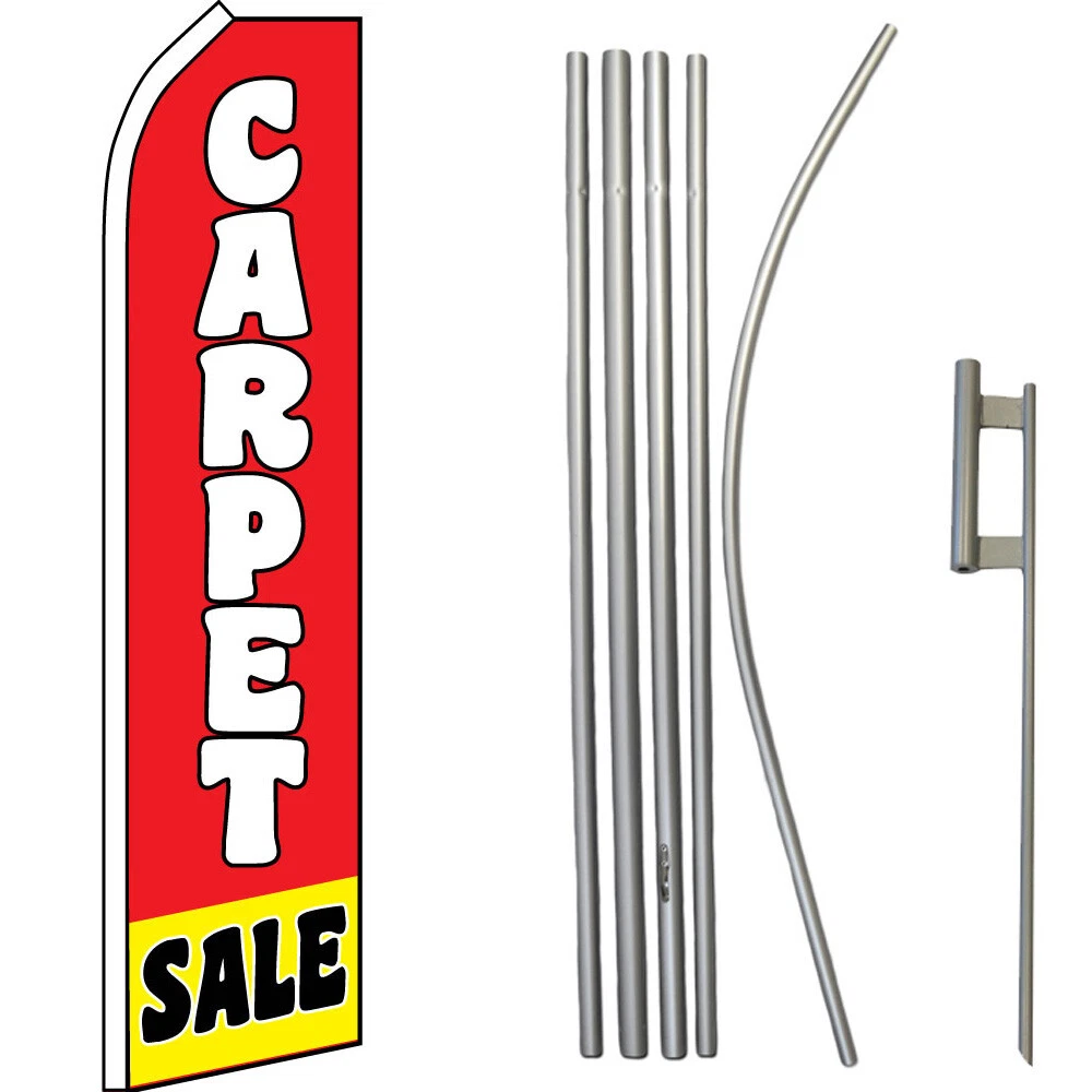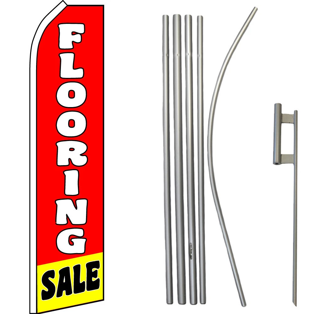 Flooring Sale Super Swooper Feather Flutter Advertising Flag Kit --------Please make selection from Drop Down Menu---------- Included: (1) Swooper Flag, (1) 5-Piece Pole, & (1) Ground Spike Swooper Advertising Feather Flag & Pole Kit This 11.5ft x 2.5ft Super Flag is made of a 140kg super-knitted polyester built to withstand high winds over time. Its curved sleeve and free-flying edge allows the flag to grab attention without wrapping around the pole, and assembly is easy. The reinforced sleeve slides over the Swooper Pole. Our 5-Piece Aluminum Super Flag Poles are 16ft Tall & Breakdown to 5 interlocking pieces for easy construction and storage. Interior is reinforced for extra strength against high winds. Top is curved to fit advertising Super Flags. The Steel Ground Spike has a 20in stake, giving your flagpole ultimate stability. Total length is 30in: 20in below ground and 10in pole holder above ground). Shipping Details Orders are shipped within 2 Business Day, Monday - Friday, excluding major holidays. Most orders arrive at your door in 2-6 Business Days. Returns We will gladly accept your return within 30-Days of the original purchase. Return shipping costs are responsibility of the buyer. Contact Us Messages are answered Monday through Friday within 24 hours of receipt. Messages sent on Weekends or Holidays will be answered the following business day.