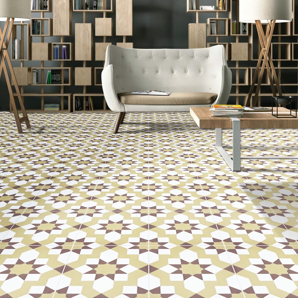 Design a dazzling backsplash, floor, or wall with these stunning tiles. Handmade by skilled Moroccan artisans for superior craftsmanship and traditional authenticity. These decorative tiles made from cement are durable indoors and outdoors. Weather-resistant and waterproof, the eco-friendly Moroccan tiles support your commitment to a greener home Features: Handmade in Morocco by Moroccan Mosaic and Tile House Suitable for floors or walls Decorative geometric pattern Measures 8 inches long x 8 inches wide 12 tiles per box, covering 5.22 square feet. Environmentally responsible and resource efficient Low maintenanceOther Sections: 2.3 tiles per square foot Professional installation recommended. The tiles are made using a traditional process, which may result in slight Free Shipping Over $49.99* Details Affos Handmade Cement Tile, 8x8, Dark/Light Brown( Morocco) Product Description: Design a dazzling backsplash, floor, or wall with these stunning tiles. Handmade by skilled Moroccan artisans for superior craftsmanship and traditional authenticity. These decorative tiles made from cement are durable indoors and outdoors. Weather-resistant and waterproof, the eco-friendly Moroccan tiles support your commitment to a greener home Features: Handmade in Morocco by Moroccan Mosaic and Tile House Suitable for floors or walls Decorative geometric pattern Measures 8 inches long x 8 inches wide 12 tiles per box, covering 5.22 square feet. Environmentally responsible and resource efficient Low maintenance Other Sections: 2.3 tiles per square foot Professional installation recommended. The tiles are made using a traditional process, which may result in slight variations in color, size, and design, making each tile unique. Imported. Story Behind the Art: "It's more than tile, it's art." That simple statement is what sets the craftsmanship of Moroccan Mosaic apart from the rest. Based in the small city of Sale, Moroccan Mosaic is a family business going back 4 generations. When Simo, the current head of the business graduated from university in New York, he had little interest in the family business. But on a return trip home, he saw that the business was not doing well and set about reviving it. One important change he made was introducing black, grey, and white designs to appeal to American and European customers. It worked. When he started, they employed 2 workers and now they have nearly 80 on staff. The workshop itself is fairly simple, and the techniques used to create the tiles are steeped in tradition. Some modern equipment is available, though the workers prefer to use the more rustic tools. The creative process is time intensive and done by hand, as Simo insists on no corners be cut or production be rushed. Environmentally responsible and resource efficient, no chemicals are used at any step. For example, colors used come from nature literally. Green comes from mint leaves, orange from orange peel, and black from charcoal. The tiles themselves are a simple mixture of cement, sand, and granite powder. Moroccan Mosaic hires only local workers, teaching them a valued skill as well as paying them fair wages. Simo's goals for his business are to share the tradition of gorgeous Moroccan tile, grow the business, and employ more and more workers . Please be aware that if you order more than 151 pounds of tile or flooring, the order may need to be shipped Freight and our Oversized Item Delivery/Return policy will apply.