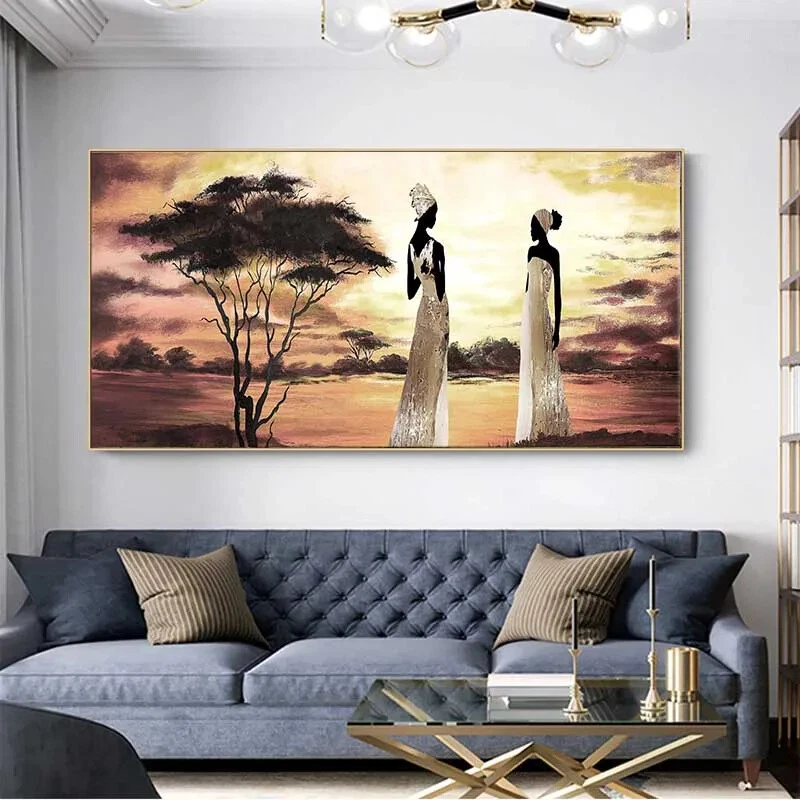African Art Landscape and Woman Poster Prints Wall Art Home Decor