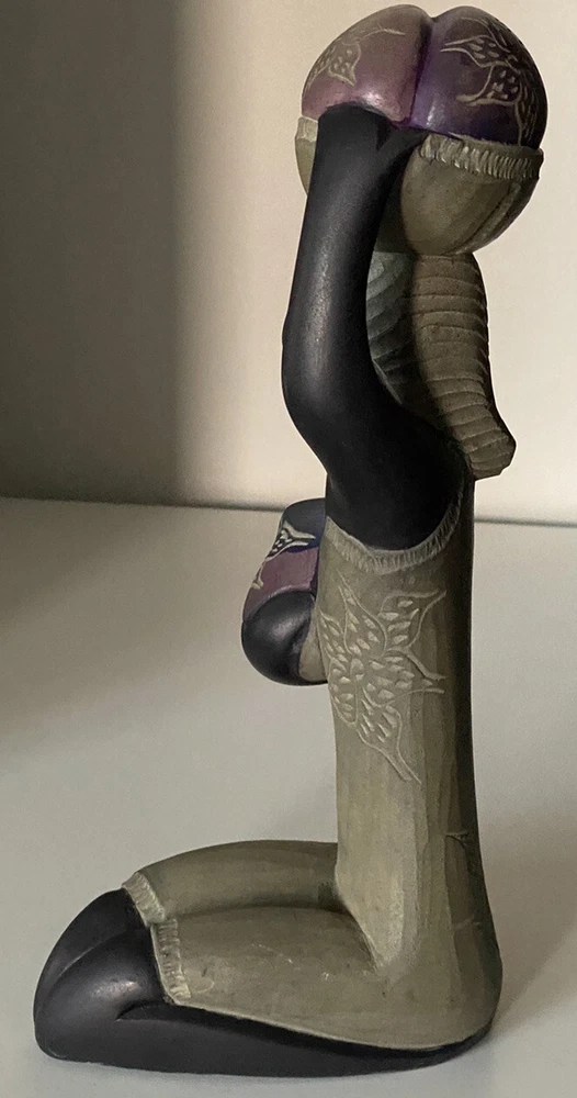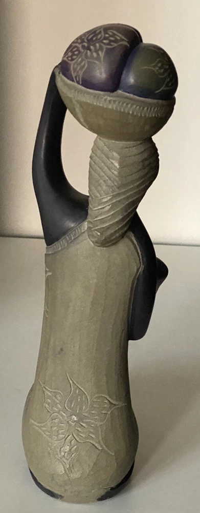 African Art Women with Basket Hand Carved Stone Sculpture Abstract 10” x 5” x 3” in Excellent Used Condition - Beautiful!