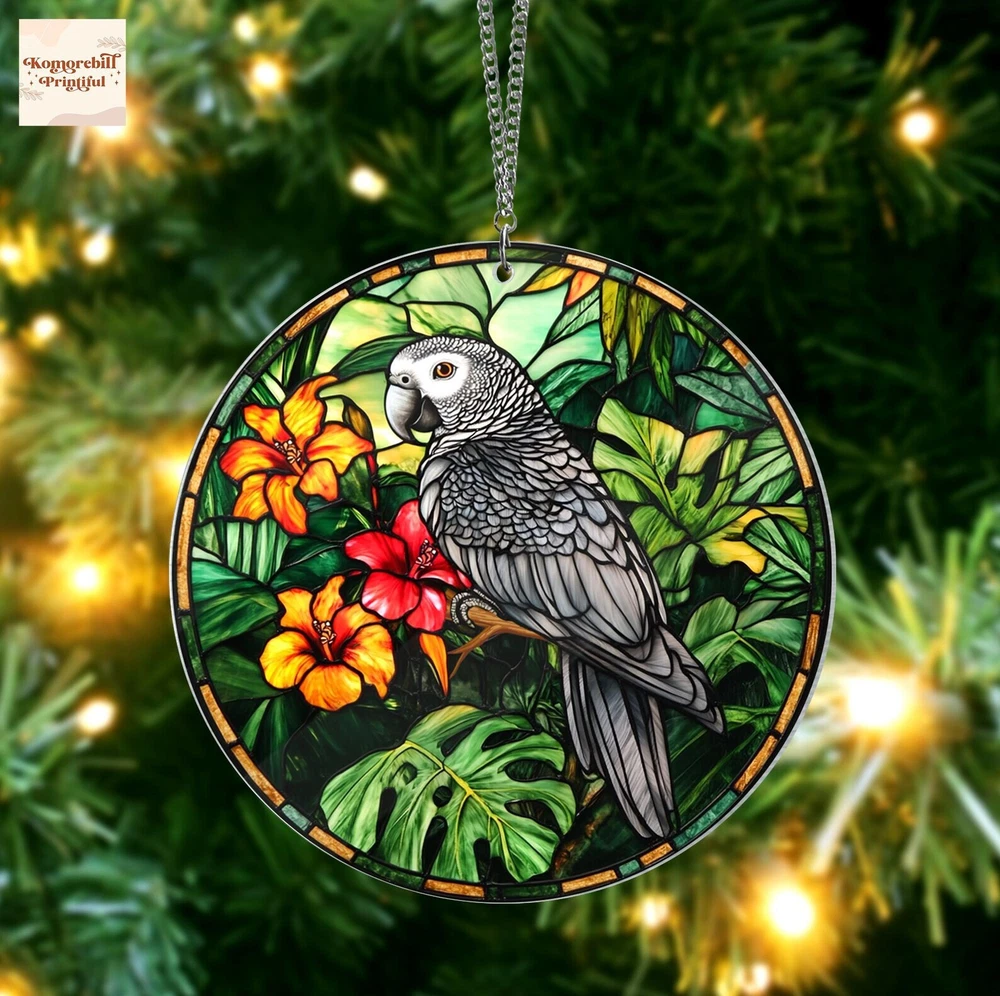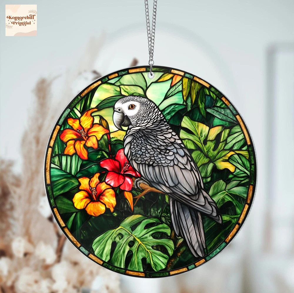 African Grey Parrot Acrylic Window Hanging Grey Parrot Wall Hanging Bird Lovers Gift Bird Nerds Birds Decoraction Home Decor Wall Decor Brighten up your space with a beautiful custom shape window hanging suncatcher. Designed to reflect light and add vibrant colors to any room, this decorative piece is the perfect addition to your space's decoration. Material: Clear acrylic sheet (3mm thick), this suncatcher offers a sleek, lightweight design that’s built to last. The acrylic adds shine and translucency. Matte frosted surface on the back of the acrylic creates a soft, translucent printing effect. As sunlight filters through, it casts colorful reflections, bringing a radiant touch to your living space. Multiple sizes for different décor needs: 3.5x3.5, 4x4, 5x5, 6x6, 8x8, 10x10, 12x12 inches - Suitable for any setting, from cozy spaces to larger windows. Its versatile size range ensures it will beautifully complement your home window, Christmas trees, office, or even outdoor spaces. Versatile Hanging Options for different sizes: Smaller sizes (3.5in, 4in, 5in): 7.5 inch (20 cm) metal chain Larger sizes (6in, 8in, 10in, 12in): an 11.8" (30cm) metal chain and a suction cup for secure attachment, perfect for windows or glass doors.