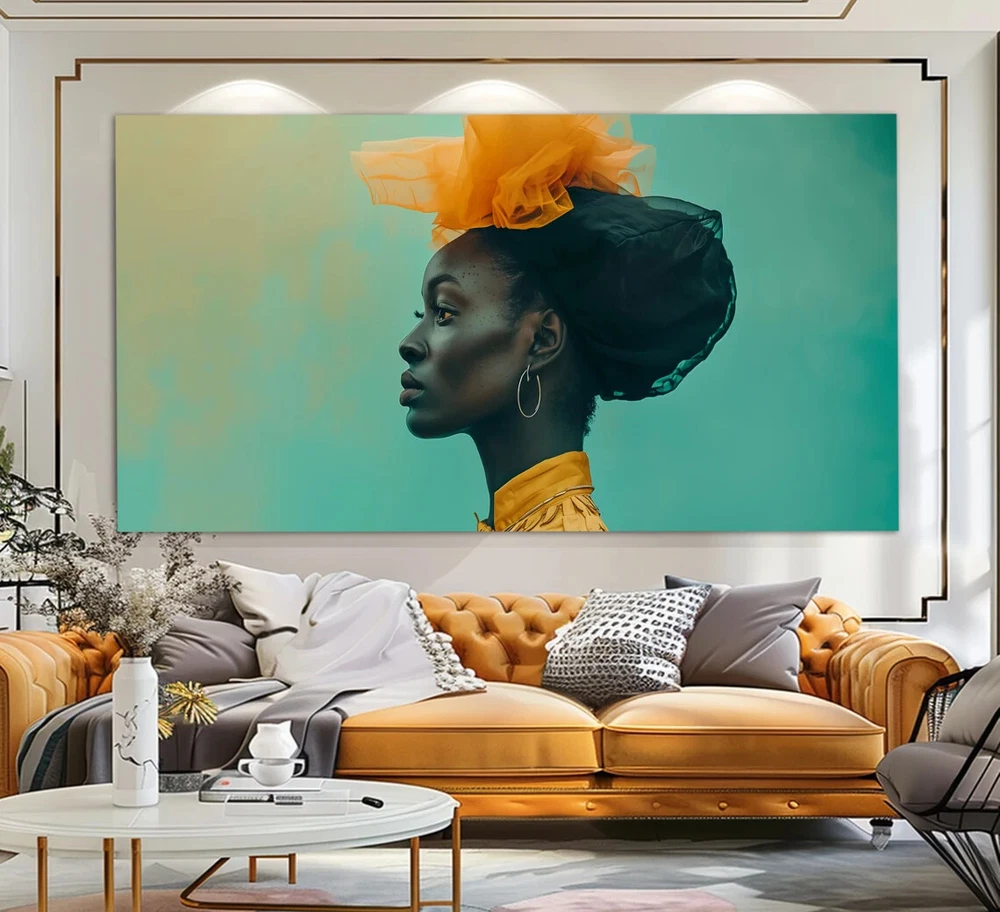 African Woman Yellow Ethnic Painting Unframed Canvas Print Australian Wall Art