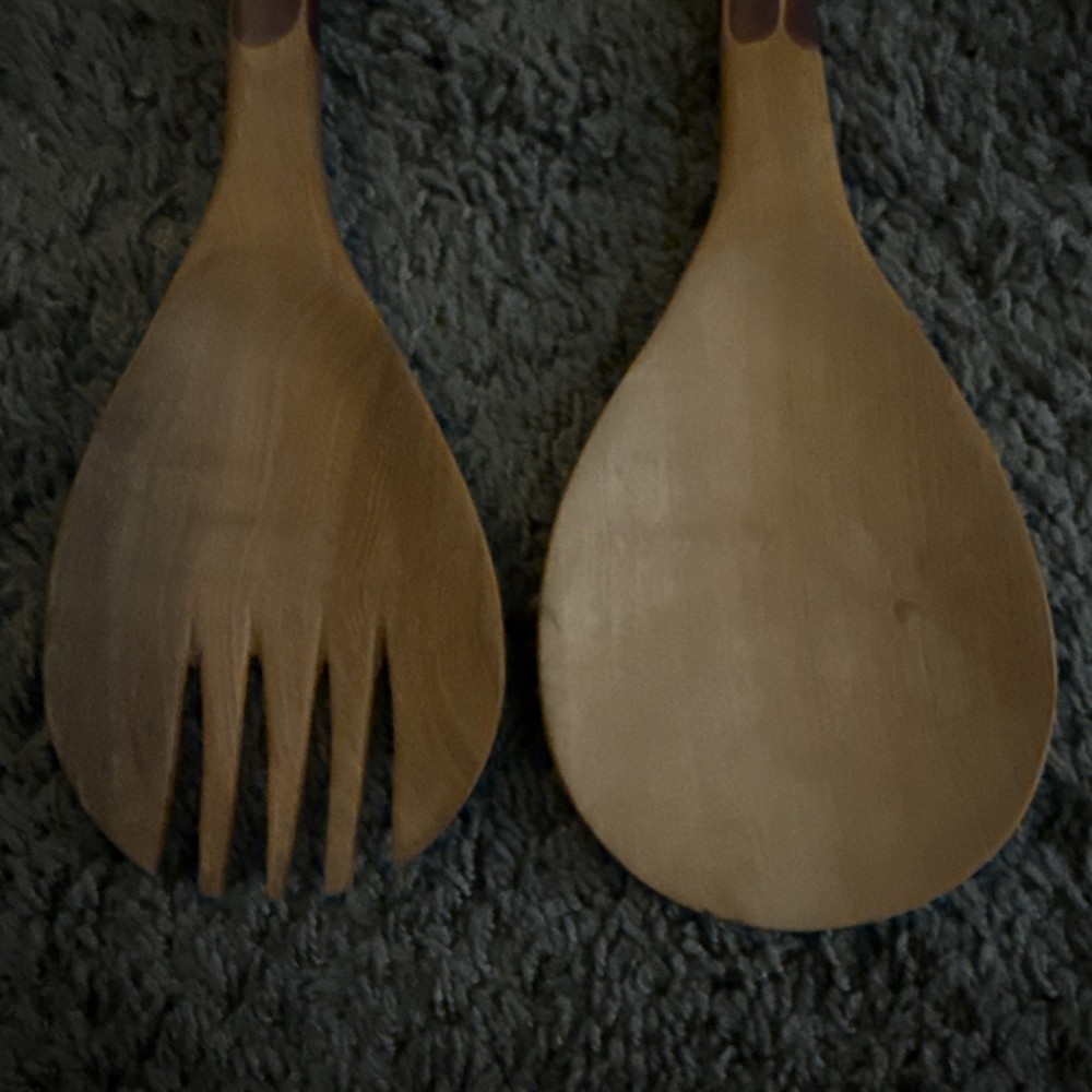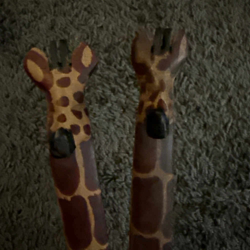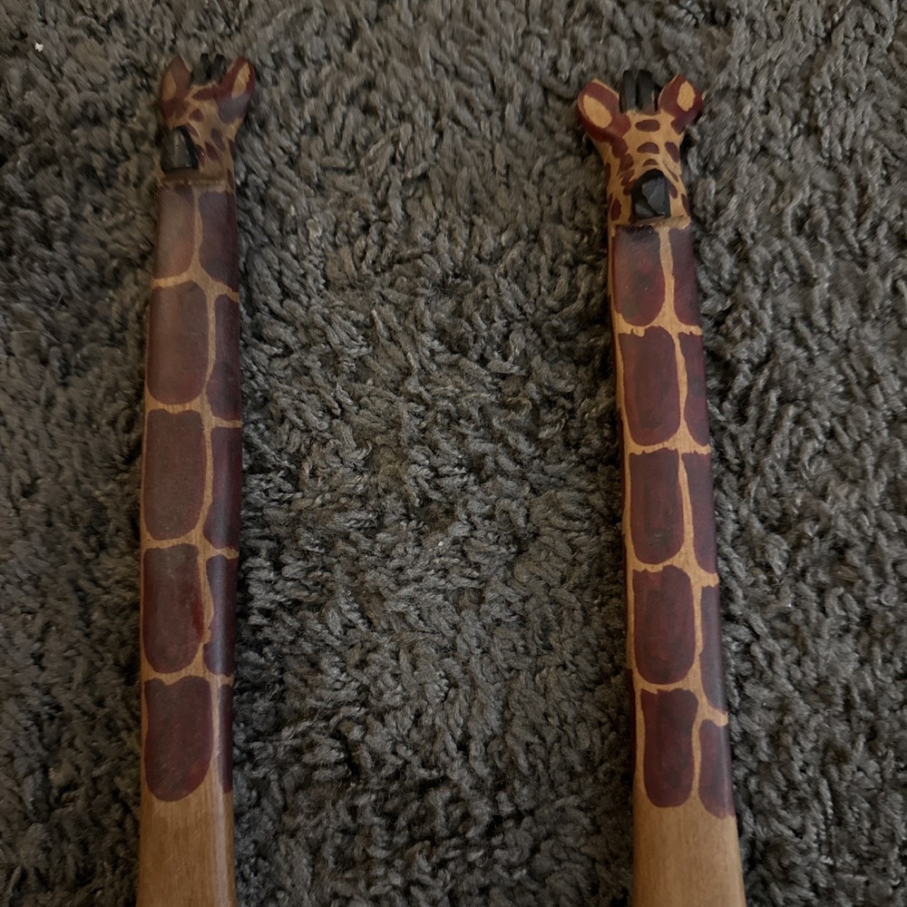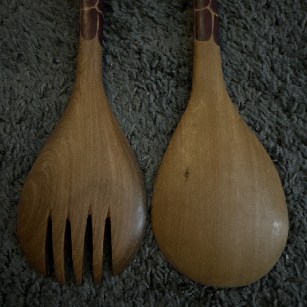 Beautifully hand carved giraffe handle spoon/fork/salad wooden set 12” long each Made in Africa Smoke and pet free home