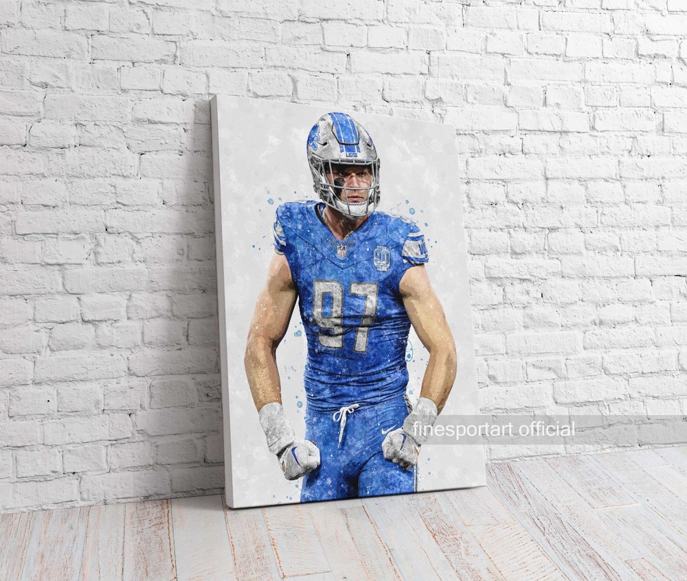 Aidan Hutchinson poster in Detroit Lions uniform? Yes! We have the best selection of sports posters, canvas prints and wall art for sale. This print will be a great gift for any football fan. QUALITY : *Premium Posters - Museum-quality poster made on thick and long-lasting matte paper. - Paper weight: 200 gsm / 80 lb - Professionally Printed on Epson EP Premium. - Shipped in sturdy packaging protecting the poster. *Canvas Stretched - Cotton canvas composite with a special proprietary coating. - Inner frame made with radial pine sourced from renewable forests. - Soft rubber dots on bottom back corners for support. - High image quality and detail. - Back hanging included. SHIPPING INFORMATION: - FREE SHIPPING on all prints. ✉️Please contact me if you have any questions! DISCLAIMER: "My sports prints are created with my own artistic interpretations using a graphic editor. Any brand names, logo or trademarks used herein remain the property of their respective owners. The listing of any company, drawing, quote and/or their logos is not intended to imply any endorsement or direct affiliation with said company."