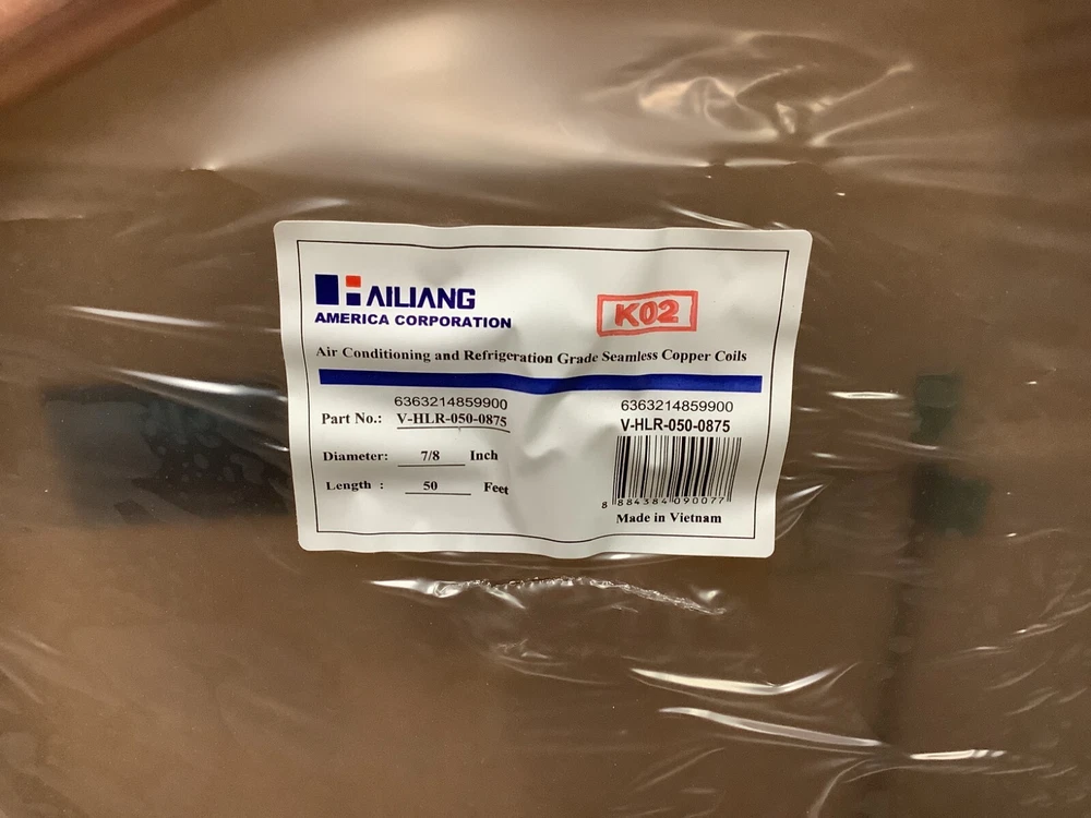 Item Title: Hailiang A/C and Refrigeration Grade Seamless Copper Coils Item Description: 7/8" Dia. 50 Feet Item No : 6363214859900 Weight: 20 lbs. Package Condition: Good Item Condition: New Listing Code: WH1-9848-M Shipping: We generally ship within 1 business day of your payment; however, we ship same business day of payment when possible. Payments made after 2 p.m. CST will be shipped the following business day. Most of our shipments will be sent via USPS Priority Mail, Parcel Select, or (when applicable) Media Mail or First Class. We also occasionally ship some items via UPS. If an item is too large to ship via USPS or UPS, it will be shipped via freight. For items that will be sent via freight shipping, the buyer should contact us with their location including ZIP code and let us know whether the item will be shipped to a business or residential address. We also welcome buyers to set up their own shipment or pick up their items from us locally. International Buyers: Import duties, taxes and charges are not included in the item price or shipping charges. These charges are the buyer’s responsibility. Please check with your country’s customs office to determine what these additional costs will be prior to bidding/buying. These charges are normally collected by the delivering freight (shipping) company or when you pick the item up – do not confuse them for additional shipping charges. We do not mark merchandise values below value or mark items as ‘gifts’ – US and International government regulations prohibit such behavior. Return Policy: If for any reason, you are unsatisfied with your purchase, please contact us within 14 days to arrange a return. Please contact us BEFORE opening a case.