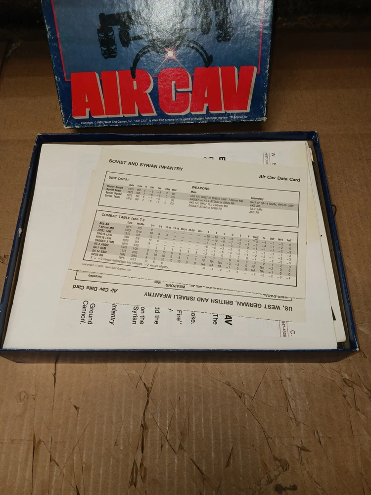 Air Cav Helicopter Warfare In The 80's West End Games Board Game 100% Complete. Condition is Used. Shipped with FedEx Ground Economy.