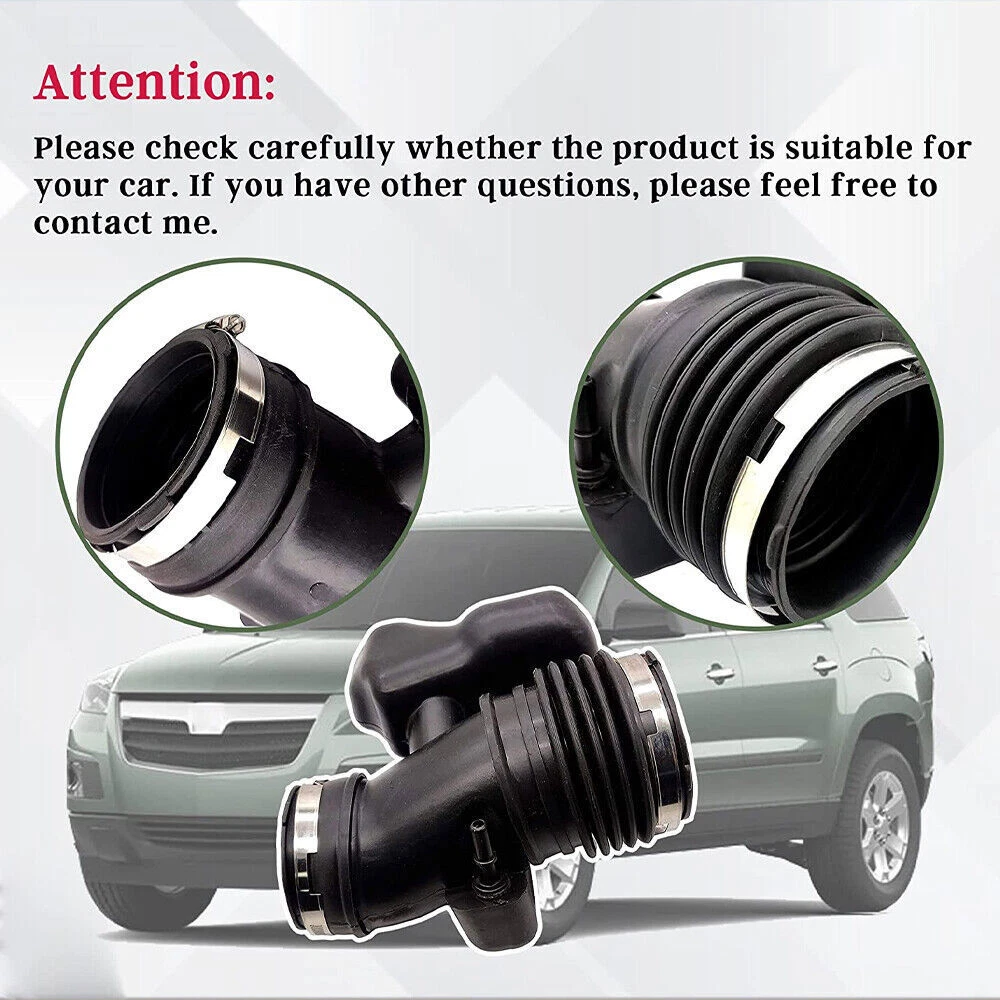 Air Cleaner-to Intake Tube Duct Hose for 09-11 GMC Acadia Chevy Traverse Buick Description: 【Compatible with】For 2009-2011 Buick Enclave丨For 2009-2011 Chevrolet Traverse丨For 2009-2011 GMC Acadia丨For 2009-2010 Saturn Outlook. Please check your vehicle in the Amazon Fitment Filter System in the top left corner. Compatibility information provided is for reference only. Please make sure to match the exact part numbers between this part and the part that you are replacing. 【Function】Air intake hose plays an important parts that fixes between air intake box and throttle body on vehicle, which connects the air filter box and the intake manifold. The intake hose cracks, chips, or breaks can develop cracks and holes which can result in a check engine light (CEL), poor fuel economy, and hesitation during acceleration, under these circumstances, you need replace it timely! 【High-quality】Made of rubber materials that contain the component of high-tenacity fibre, have more enhance antioxidant and anti-aging, fully resist cracking caused by drying and prevent soften from high temperature. While this is NOT a genuine OEM part, but it's good value, the price is only a small part of the dealer! 【Warranty】A professional auto parts manufacturer, strictly based on oe quality parts for open mold manufacturing, to ensure accurate product adaptation. If you are encounter product installation, product quality and other problems, please feel free contact us. No longer need to go to the local auto repair shop to repair the vehicle, reducing time waste and money expenses for you. Specification: Brand New and High Quality Compatible PN:25783713 Color:Black Compatibility: 2009-2011 Buick Enclave 2009-2011 Chevrolet Traverse 2009-2011 GMC Acadia 2009-2010 Saturn Outlook What You Get: 1 x air intake hose Note: 1. If you has any problem, please feel free to contact us. 2. Please let us know before you send us the neutral/negative feedback that wont help to finish the issues. And I will definitely try my best to provide the best solutions which would meet your satisfactory. Payment Delivery details Terms of sales About us Contact us Payment 1.Payment must be received within 11 days after winning the item,UPI (Unpaid Item Case) will be filed automatically if buyers fail to make the payment in 11 days after item ends. 2.If you have difficulty paying for the item, please email us to cancel the order. Delivery details 1. Items will be sent out in 48 hours on payment received from Monday to Friday. Orders during weekends and holidays will be posted in the following working day. 2. Please make sure your shipping address and the order information is correct before placing an order. We will not be responsible for item loss due to wrong or unknown address. 3. Products will be shipped from NJ/CA via USPS/UPS/Fedex/DHL. Shipping time is usually 2-7 business days (except Saturday and Sunday.) If you need the item urgently, please contact us for details before you buy. Terms of sales 1.We accept 30 days return/refund guarantee. 2.If the item you received is faulty, damaged or incorrect, or any further problems, you can return it for replacement or refund, please contact our customer service on eBay within 30 days from item received. 3.For damaged items on arrival, please contact us first, sending us an email with a photo is preferred. We will offer solutions to such cases. Full refund or replacement will be guaranteed. About us Welcome to thebetterautopartszone We are specialized in auto accessories for more than 8 years and we have been exporting all kinds of items concerning the auto-parts that come with high quality & best price & excellent after-sales service! Thank you for shppping at our eBay store. Contact us 1.Please contact us first if you have any questions such as product damaged, item not arrived, wrong item sent and item does not work. All those issues would be solved immediately with your satisfactory! 2. Please contact us first before you left us a negative/neutral feedback and we are pleased to solve the problems you met. 3.Please feel free to contact us if you have any problems and we would always be here for your need . Universal Fitment Direct Replacement Material Stainless Steel and Plastic Manufacturer Part Number 25783713 Brand TB Manufacturer Warranty 60 Day Color Black Type Air Intake System Fitment Direct Replacement