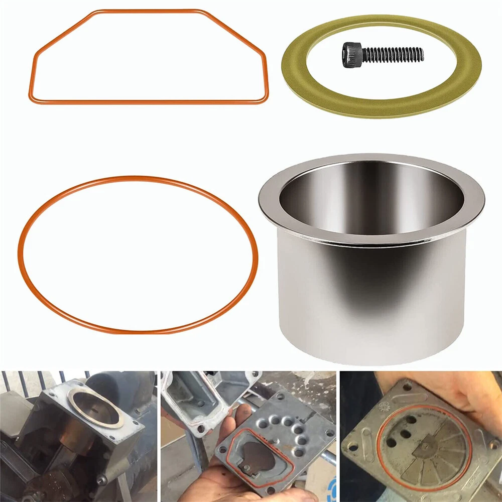 Fitment: Compatible with both the single cylinder oil-free pumps and the twin cylinder oil-free pump, fits for DeVilbiss, for Porter Cable, for Sears Craftsman, for Snap On, for Ex-Cell, for Air America, for Charge Air Pro, for Grainger, for Stanley Black, for Decker and many other privately labeled air compressors. Fits model number 165080. Features: 1) When your compressor runs so loud or does not build pressure, please use this compressor ring kit to fix it, our high quality ring kit will fix the problem and make the compressor working like a new one 2) Extremely easy to install the kit, just take the cylinder system apart, the new sleeve has a rolled bottom so you need to remove the piston from the shaft and slide it up over piston, put the ring on piston before inserting into sleeve will be easier. 3) Made of high class quality steel and rubber, the cylinder sleeve is hardened to ensure tough and high pressure withstand, and it’s rustproof and corrosion resistance. The piston ring and sleeve O-rings are made of specific rubber, they will seal the cylinder and provide a great airtightness to ensure minimum loss of gases. They are very durable that could serve for many years. Installation Guide Step 1. Uninstall the parts as direction: fill pipe-top cylinder head- valve plate assembly-cylinder sleeve- belower fan- piston rod. Step 2. Install the piston ring on the piston rod. Step 3. Insert the piston rod into the sleeve. Step 4. Attach the piston on the shaft and tight the screw. Step 5. Replace the both sleeve o rings on the valve plate assembly, then cover to the piston back. Step 6. Torque the cylinder head on and install the other parts back as direction. Package included: 1 x D25837 Coated Cylinder Sleeve 1 x DAC-308 Coated Oil Free Piston Ring 1 x SSF-3158-1 Piston Rod Cap Screw 1 x SSG-8156 Valve Plate to Cylinder Sleeve O-Ring 1 x ACG-45 Cylinder head to Valve Plate O-Ring