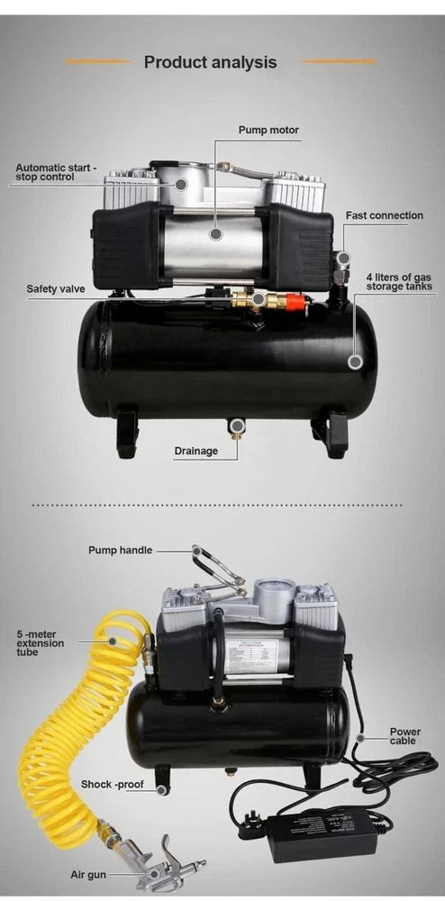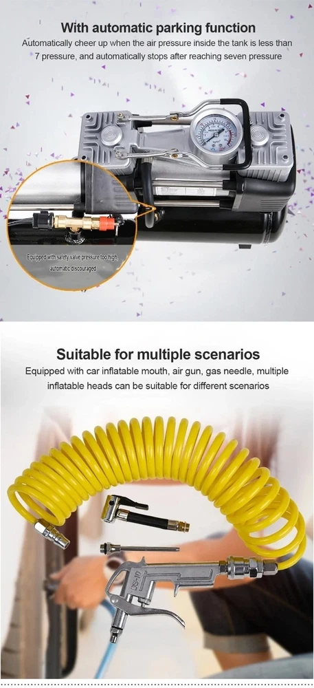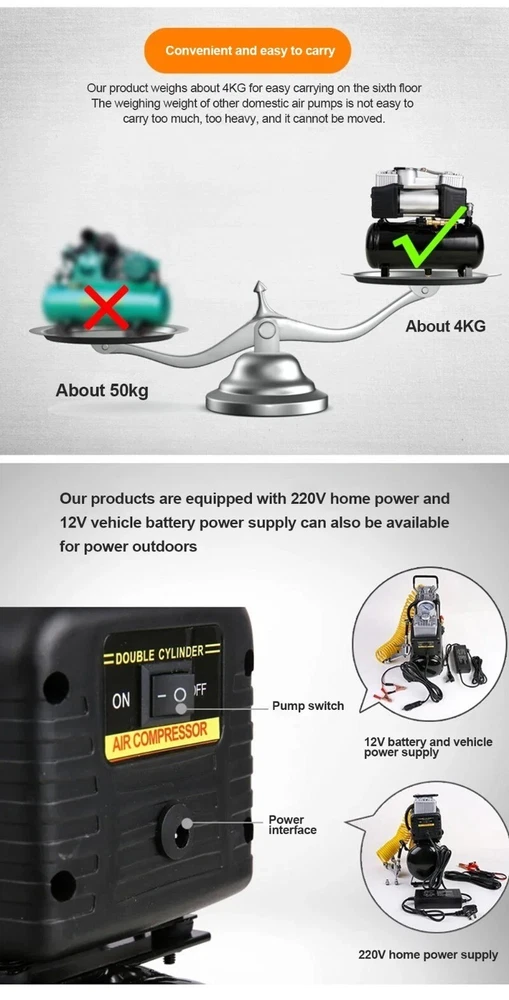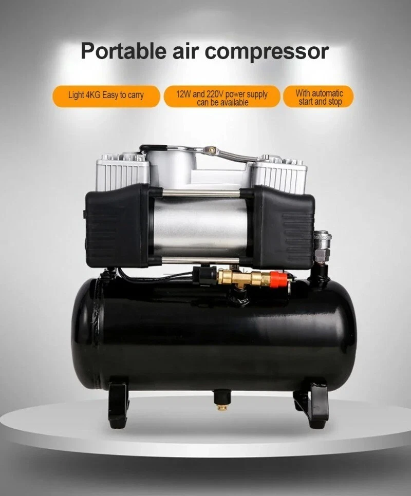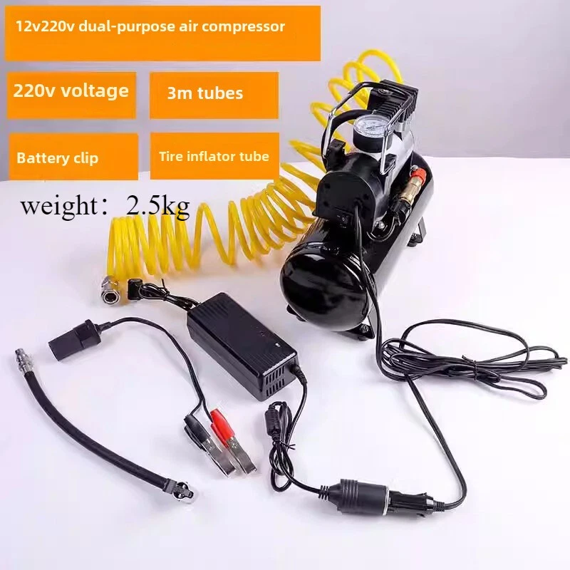 Small air compressor portable oil free low noise air pump Mini 220v car 12v car paint air storage tank