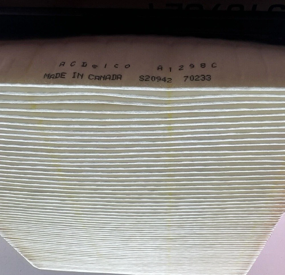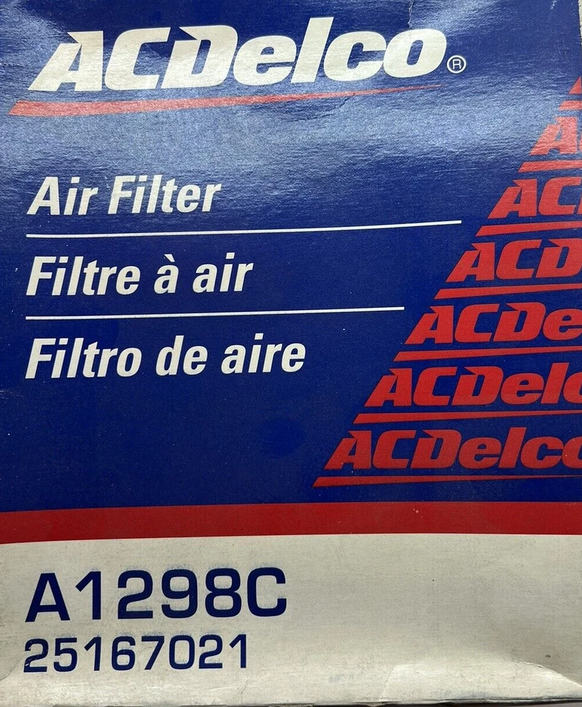 Air Filter ACDelco A1298C. -------------- We reserve the right to rebox all items for shipping. PLEASE DOUBLE CHECK YOUR OWN PART NUMBERS THROUGH VIN with YOUR DEALER or YOUR MECHANIC! You are responsible for accurate fitment. ALL OUR PARTS ARE NEW OLD STOCK otherwise specified. Our parts are left over merchandise from closed auto parts stores/mechanics, manufactures that are no longer in business or manufacture overrun?s. These items, although NEW, are not always crispy clean like you would purchase from your local retailer. Boxes in poor shape may not be included when shipped. Boxes that the item originally was sold in may show shelf wear or signs of storage on the box but does not affect the item, please see photos for accurate condition of the box if you are concerned but we do check each item for condition. We do not offer repair or installation advice. We are not mechanics. NO warranty is expressed, written, or implied. If any manufacturer warranty exists, it is between you and them.