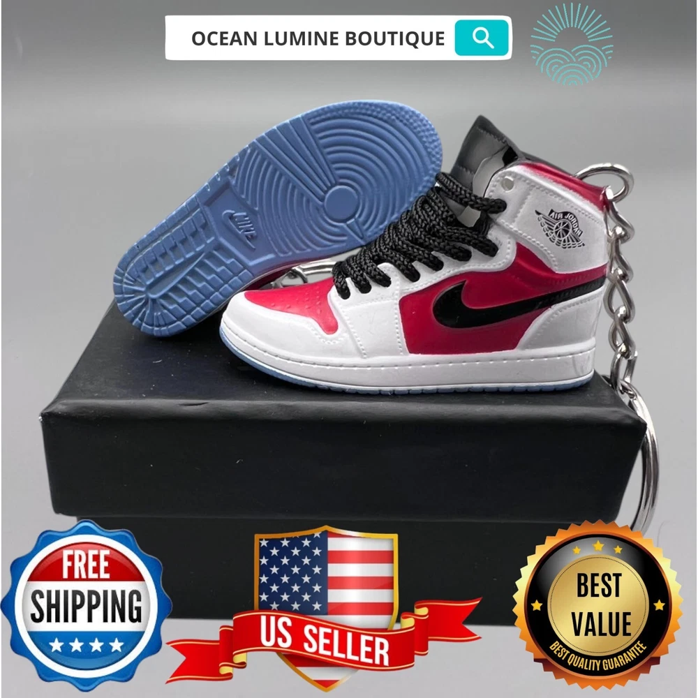 PLEASE READ BEFORE YOU PURCHASE You get the style in the very first pic, if you searching for more styles plz visit my page This is the best quality you can get, many other cheaper ones have poor quality, I know all the factories trust me, some really be making crap and you can not tell from the pictures. Handcrafted and hand-painted 3D Mini Sneaker Keychains inspired some of the most coveted sneakers ever produced Materials as ABS Plastic (Soft Plastic) Jordan pin color will be given randomly (If chosen) All Shoe keychain size is about 2 1/2 (L) x 1" (W) x 2" (H) The shoe Tongue is movable, it is not cracked or broken. Random shoe box styles will be given, if you have a preference please get in touch with me. These are all handmade and hand-painted with better paint, if you want to find a lower price please seek lower quality, my key chains are the best quality you can find. We've been selling these key chains for 3+ years, and have the most styles & best quality with super fast shipping. Search OCEAN LUMINE BOUTIQUE on any search engine to visit us! CLICK ME FOR MORE STYLES Disclaimer Product packaging, specifications, and prices are subject to change without notice. All information about the products is provided for information purposes only. Please always read labels, warnings, and directions provided with the product before use. Shipping We will ship all orders within 2 business days of payment, we provide free upgrade USPS shipping service up to 2-DAY Priority if Urgent Contact We can be contacted at any time through eBay messages if you have any questions, comments or product requests. We will respond to you within 24 hours and do our best to help you out! Features and further details 3000+ keychains in stock with up to 400+ styles We do bulk orders with discounts and provide long-term business relationships More styles are available in my shop PP WORLD