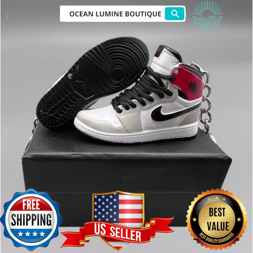 PLEASE READ BEFORE YOU PURCHASE You get the style in the very first pic, if you searching for more styles plz visit my page This is the best quality you can get, many other cheaper ones have poor quality, I know all the factories trust me, some really be making crap and you can not tell from the pictures. Handcrafted and hand-painted 3D Mini Sneaker Keychains inspired some of the most coveted sneakers ever produced Materials as ABS Plastic (Soft Plastic) Jordan pin color will be given randomly (If chosen) All Shoe keychain size is about 2 1/2 (L) x 1" (W) x 2" (H) The shoe Tongue is movable, it is not cracked or broken. Random shoe box styles will be given, if you have a preference please get in touch with me. These are all handmade and hand-painted with better paint, if you want to find a lower price please seek lower quality, my key chains are the best quality you can find. We've been selling these key chains for 3+ years, and have the most styles & best quality with super fast shipping. Search OCEAN LUMINE BOUTIQUE on any search engine to visit us! CLICK ME FOR MORE STYLES Disclaimer Product packaging, specifications, and prices are subject to change without notice. All information about the products is provided for information purposes only. Please always read labels, warnings, and directions provided with the product before use. Shipping We will ship all orders within 2 business days of payment, we provide free upgrade USPS shipping service up to 2-DAY Priority if Urgent Contact We can be contacted at any time through eBay messages if you have any questions, comments or product requests. We will respond to you within 24 hours and do our best to help you out! Features and further details 3000+ keychains in stock with up to 400+ styles We do bulk orders with discounts and provide long-term business relationships More styles are available in my shop PP WORLD