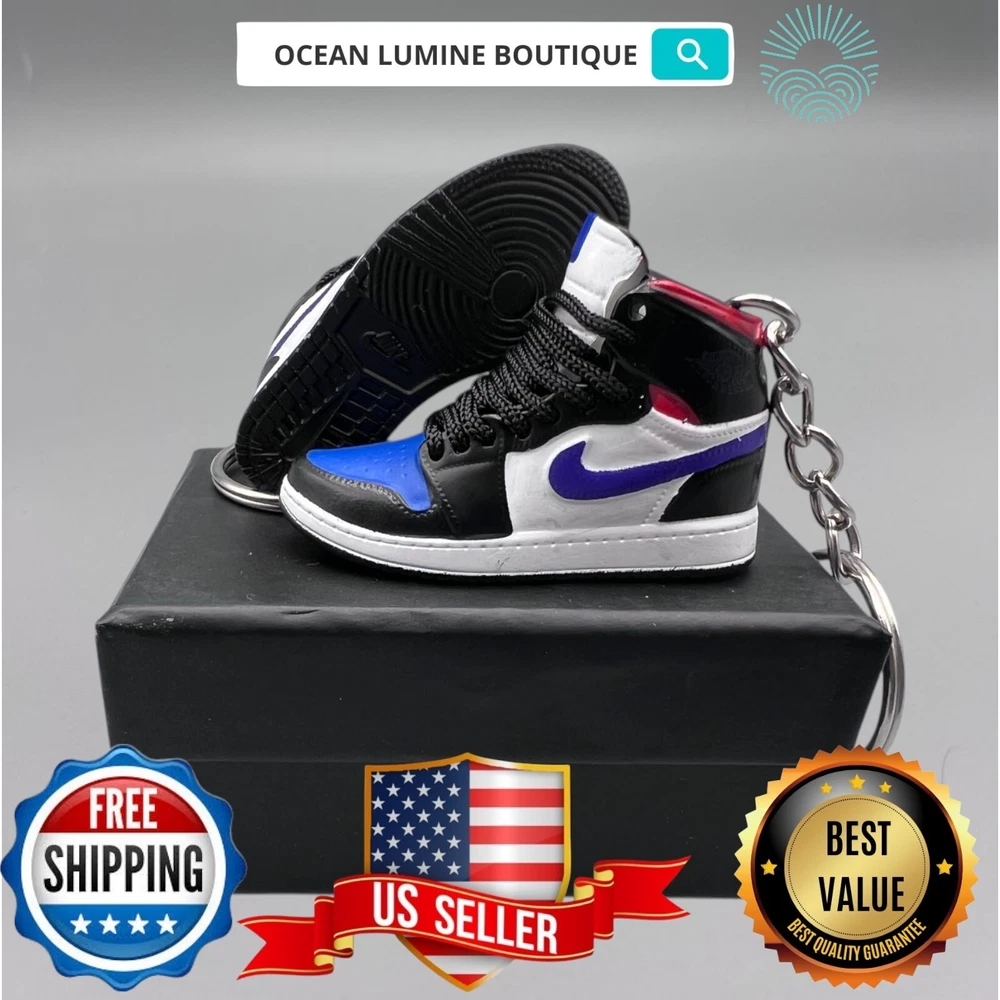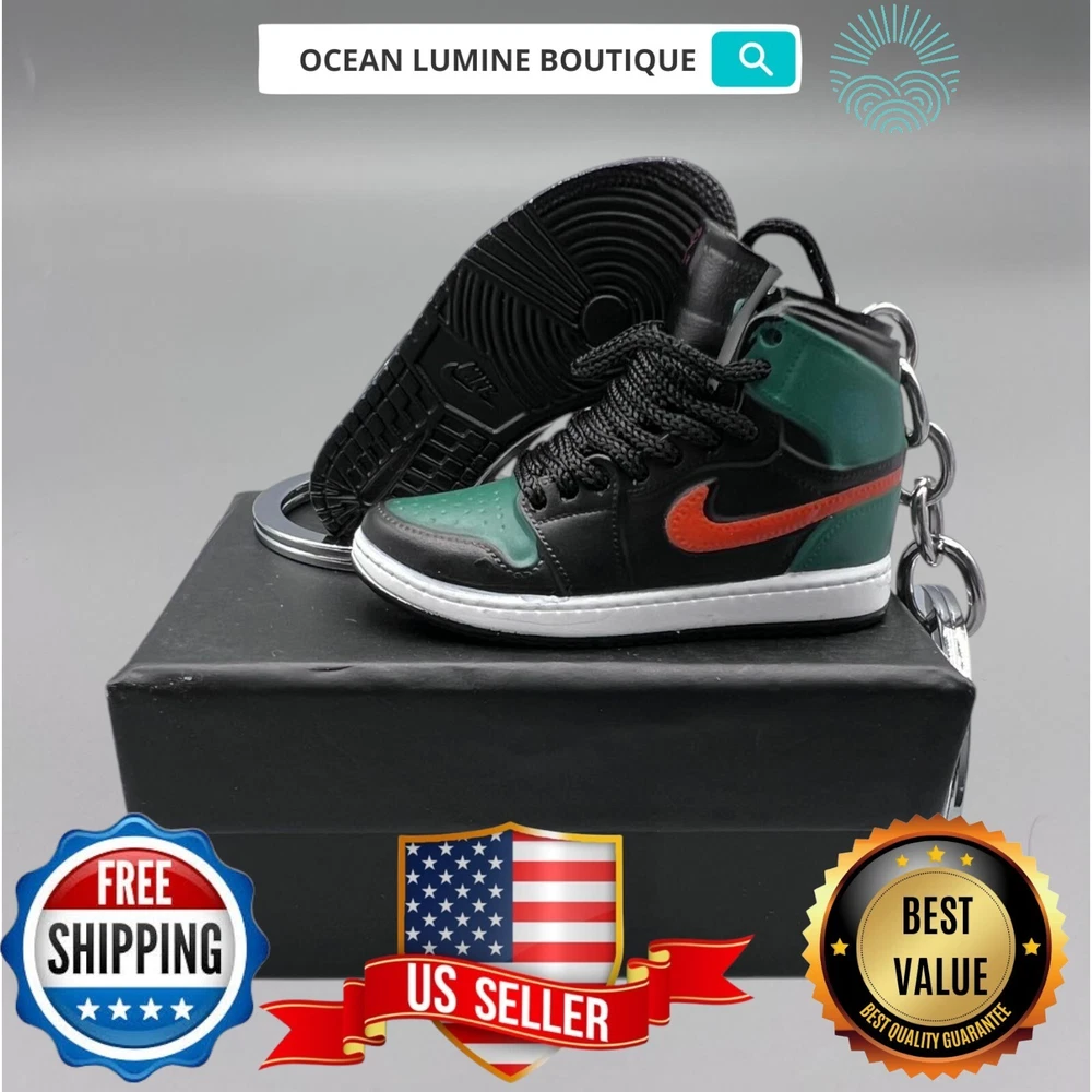 PLEASE READ BEFORE YOU PURCHASE This is the best quality you can get, many other cheaper ones have poor quality, I know all the factories trust me, some really be making crap and you can not tell from the pictures. Handcrafted and hand-painted 3D Mini Sneaker Keychains inspired some of the most coveted sneakers ever produced Materials as ABS Plastic (Soft Plastic) Jordan pin color will be given randomly (If chosen) All Shoe keychain size is about 2 1/2 (L) x 1" (W) x 2" (H) The shoe Tongue is movable, it is not cracked or broken. Random shoe box styles will be given, if you have a preference please get in touch with me. These are all handmade and hand-painted with better paint, if you want to find a lower price please seek lower quality, my key chains are the best quality you can find. We've been selling these key chains for 3+ years, and have the most styles & best quality with super fast shipping. Search OCEAN LUMINE BOUTIQUE on any search engine to visit us! CLICK ME FOR MORE STYLES Disclaimer Product packaging, specifications, and prices are subject to change without notice. All information about the products is provided for information purposes only. Please always read labels, warnings, and directions provided with the product before use. Shipping We will ship all orders within 2 business days of payment, we provide free upgrade USPS shipping service up to 2-DAY Priority if Urgent Contact We can be contacted at any time through eBay messages if you have any questions, comments or product requests. We will respond to you within 24 hours and do our best to help you out! Features and further details 3000+ keychains in stock with up to 400+ styles We do bulk orders with discounts and provide long-term business relationships More styles are available in my shop PP WORLD