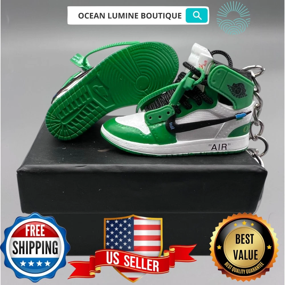 PLEASE READ BEFORE YOU PURCHASE This is the best quality you can get, many other cheaper ones have poor quality, I know all the factories trust me, some really be making crap and you can not tell from the pictures. Handcrafted and hand-painted 3D Mini Sneaker Keychains inspired some of the most coveted sneakers ever produced Materials as ABS Plastic (Soft Plastic) Jordan pin color will be given randomly (If chosen) All Shoe keychain size is about 2 1/2 (L) x 1" (W) x 2" (H) The shoe Tongue is movable, it is not cracked or broken. Random shoe box styles will be given, if you have a preference please get in touch with me. These are all handmade and hand-painted with better paint, if you want to find a lower price please seek lower quality, my key chains are the best quality you can find. We've been selling these key chains for 3+ years, and have the most styles & best quality with super fast shipping. Search OCEAN LUMINE BOUTIQUE on any search engine to visit us! CLICK ME FOR MORE STYLES Disclaimer Product packaging, specifications, and prices are subject to change without notice. All information about the products is provided for information purposes only. Please always read labels, warnings, and directions provided with the product before use. Shipping We will ship all orders within 2 business days of payment, we provide free upgrade USPS shipping service up to 2-DAY Priority if Urgent Contact We can be contacted at any time through eBay messages if you have any questions, comments or product requests. We will respond to you within 24 hours and do our best to help you out! Features and further details 3000+ keychains in stock with up to 400+ styles We do bulk orders with discounts and provide long-term business relationships More styles are available in my shop PP WORLD