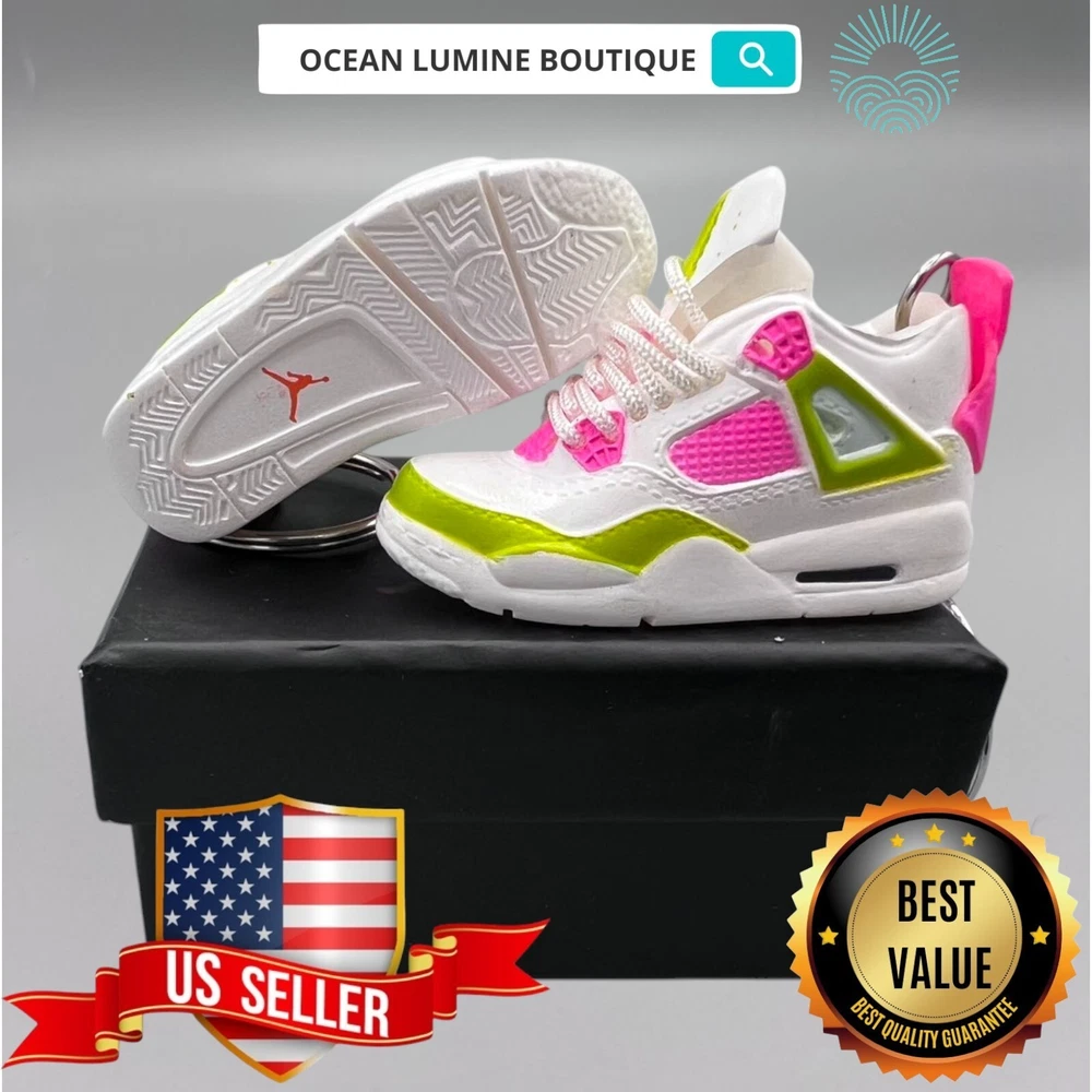 PLEASE READ BEFORE YOU PURCHASE You get the style in the very first pic, if you searching for more styles plz visit my page Handcrafted and hand-painted 3D Mini Sneaker Keychains inspired some of the most coveted sneakers ever produced Materials as ABS Plastic (Soft Plastic) Jordan pin color will be given randomly All Shoe keychain size is about 2 1/2 (L) x 1" (W) x 2" (H) The shoe Tongue is movable, it is not cracked or broken. Random shoe box styles will be given, if you have a preference please get in touch with me. These are all handmade and hand-painted with better paint, if you want to find a lower price please seek lower quality, my key chains are the best quality you can find. We've been selling these key chains for 3+ years, and have the most styles & best quality with super fast shipping. Search OCEAN LUMINE BOUTIQUE on any search engine to visit us! CLICK ME FOR MORE STYLES Disclaimer Product packaging, specifications, and prices are subject to change without notice. All information about the products is provided for information purposes only. Please always read labels, warnings, and directions provided with the product before use. Shipping We will ship all orders within 2 business days of payment, we provide free upgrade USPS shipping service up to 2-DAY Priority if Urgent Contact We can be contacted at any time through eBay messages if you have any questions, comments or product requests. We will respond to you within 24 hours and do our best to help you out! Features and further details 3000+ keychains in stock with up to 400+ styles We do bulk orders with discounts and provide long-term business relationships More styles are available in my shop PP WORLD