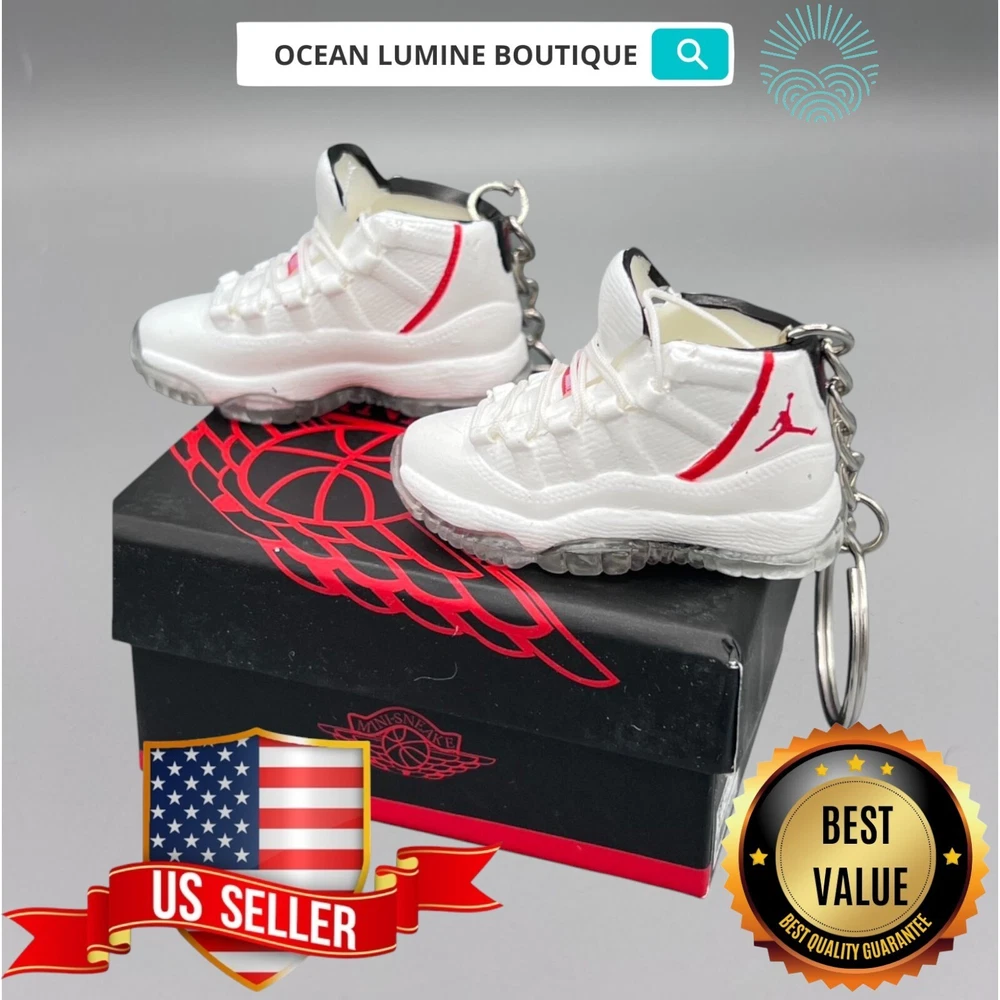 PLEASE READ BEFORE YOU PURCHASE You get the style in the very first pic, if you searching for more styles plz visit my page Handcrafted and hand-painted 3D Mini Sneaker Keychains inspired some of the most coveted sneakers ever produced Materials as ABS Plastic (Soft Plastic) Jordan pin color will be given randomly All Shoe keychain size is about 2 1/2 (L) x 1" (W) x 2" (H) The shoe Tongue is movable, it is not cracked or broken. Random shoe box styles will be given, if you have a preference please get in touch with me. These are all handmade and hand-painted with better paint, if you want to find a lower price please seek lower quality, my key chains are the best quality you can find. We've been selling these key chains for 3+ years, and have the most styles & best quality with super fast shipping. Search OCEAN LUMINE BOUTIQUE on any search engine to visit us! CLICK ME FOR MORE STYLES Disclaimer Product packaging, specifications, and prices are subject to change without notice. All information about the products is provided for information purposes only. Please always read labels, warnings, and directions provided with the product before use. Shipping We will ship all orders within 2 business days of payment, we provide free upgrade USPS shipping service up to 2-DAY Priority if Urgent Contact We can be contacted at any time through eBay messages if you have any questions, comments or product requests. We will respond to you within 24 hours and do our best to help you out! Features and further details 3000+ keychains in stock with up to 400+ styles We do bulk orders with discounts and provide long-term business relationships More styles are available in my shop PP WORLD