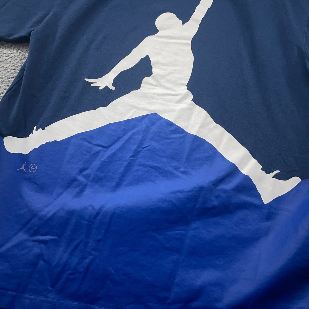 Sports meets street. This Air Jordan x Fragment Design tee merges Hiroshi Fujiwara’s legendary minimalist DNA with classic Jordan iconography. A standout piece from the collab, it features a bold, oversized Jumpman colorblock graphic on the back that sits at the intersection of sports and street culture. As seen on the back of Yuto Horigome in his "Spitfire" part for Thrasher. Please Note: There is some light fading – shown in photos. Clean and odor free. Please see all photos and measurements in photos. I offer no-hassle free returns if the garment doesn't fit or you just don't like it. I ship same day or next day, so you can expect a quick delivery. Thanks!