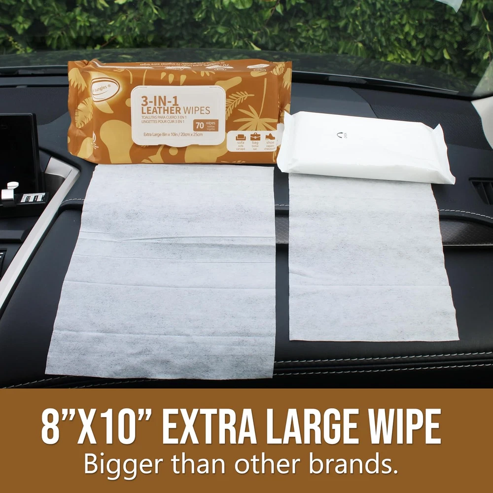 Store New Arrivals Add to Favorite View Feedback Contact Air Jungles 3In1 Leather Cleaner Wipes 70 Count (Pack of 1), Extra Large 8" X 10" Size Leather Clean Condition Protect Wipes for Vinyl, Apparel Furniture Auto Car Interior Shoes Boots Bags Description Item model number 3in1 Leather Manufacturer Air Jungles Assembly required No Batteries required No Scent Fresh Scent Brand Air Jungles Sheet Count 70 Country of Origin China Perfume Fresh Scent Item Weight 1.34 pounds Package Information Bag Is Discontinued By Manufacturer No Item Form Wipes Package Dimensions 9.21 x 4.29 x 2.76 inches Size 70 Count (Pack of 1) 8" x 10" Extra Large Wipe: Wet leather cleaning wipes for home and car interior, The strongest and largest wet paper towel leather seat cleaning wipe. Heavy Duty Cleaning Wipe: Quickly and gently removes dirt, oil, tough stains and grime from leather surfaces. Cleans new and old leather of all colors. Clean, Condition and Protect: Wipes renew and revive leather’s natural beauty, add a brilliant and protective shine to your sealed hard leather surfaces Work on All Leather: Use regularly on home and car, and leather accessories such as leather couch, purses, shoes, boots, briefcases & handbags. Ready to Use, Non-Toxic Formula: Cleaning Wipes are lint free, won't leave greasy residue on hands. These moist towels are gentle on hands and skin Product Description Wipe On, Shine On! Air Jungles 3 in 1 Leather Wipes The strongest and largest wet paper towel leather seat cleaning wipe. Quickly and gently removes dirt, oil, tough stains and grime from leather surfaces. Cleans new and old leather of all colors. Wipes renew and revive leather’s natural beauty, add a brilliant and protective shine to your sealed hard leather surfaces. Work on All Leather. Use regularly on home and car, and leather accessories such as leather couch, purses, shoes, boots, briefcases & handbags. Discover More Items For Your Home Add to Cart Add to Cart Add to Cart Add to Cart Add to Cart Add to Cart Customer Reviews 4.3 out of 5 stars 1,552 4.6 out of 5 stars 357 4.5 out of 5 stars 246 3.7 out of 5 stars 191 4.0 out of 5 stars 293 4.6 out of 5 stars 230 Price $12.95 $ 12 . 95 $11.99 $ 11 . 99 $12.95 $ 12 . 95 $12.95 $ 12 . 95 $16.95 $ 16 . 95 $14.95 $ 14 . 95 Hypoallergenic ✔ ✔ ✔ ✔ ✔ ✔ Flushable ✘ ✘ ✘ ✘ ✔ ✘ Extra Large ✔ ✔ ✔ ✔ ✔ ✘ Gentle on Skin ✔ ✔ ✔ ✔ ✔ ✔ Usage Leather Pets All Purpose & Every Surface Glass & other similar surfaces Adult and Baby Face and Eyes ABOUT US We offer the best prices around on high quality products. Our E-store includes media such as books, movies, music and games while offering electronics, toys, sporting apparel, clothing, tools, general home, garden items and more. SHIPPING We are always working hard to ensure your package arrives as soon as possible. Please understand that some factors like weather, high postal traffic, and the performance of shipping companies are outside of our control. We offer free shipping to the lower 48 states and ship within 2 business days of payment, usually sooner. We do not accept P.O. Boxes. Please provide a physical address. RETURNS We offer a 30-Day Return Policy on items which you are not completely satisfied with. You have the option for a full-refund or an exchange of the item. No returns are available on items shipped outside of the USA. PAYMENT We accept PayPal. CONTACT US This page content is yet to come Please ad us to your favorite seller and visit again later Thank You CUSTOMER SATISFACTION We try our very best to make sure every customer is completely satisfied. If there's a problem, message us! We're happy to help.