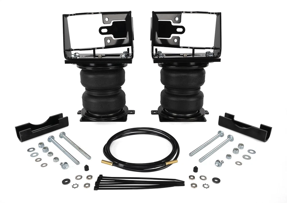 $ImageURL1$ AirLift, Air Lift, 88383, LoadLifter, Load Lifter, Helper Spring, Suspension Kit, Aftermarket, Performance, Tow, Towing, Trailer, Crew Cab, Standard Cab, Extended Cab, Toyota Tundra, Leveling Air Lift LoadLifter 5000 Ultimate Air Spring Helper Kit for Toyota Tundra 88383 PART NUMBER: 88383 BRAND: Air Lift DESCRIPTION The Air Lift LoadLifter 5000 Ultimate offers up to 5,000 lbs. of load-leveling capacity and features an internal jounce bumper to help absorb road shock and minimize bottoming out. These tough, durable air springs are fully adjustable from 5-100 PSI for a stable, level ride loaded or unloaded. PRODUCT SPECS Weight: 33.4lb Width: 9.25in Depth: 14.125in Height: 10.75in Replacement Air Spring: 84383 Drilling Required: No Application Type: Rear Kit Warning Note: Does not fit with 5th wheel hitches or vehicles equipped with factory air suspension. Adjustable air springs from 5-100 PSI, with up to 5,000 lbs of leveling capacity* Levels your vehicle when towing or hauling a heavy load for a safe, comfortable ride Eliminates vehicle sag and bottoming out Easy to install with included instructions No frame drilling required Internal jounce bumper absorbs shock and can be safely ran with zero PSI** Features Air Lift's Limited Lifetime Warranty
