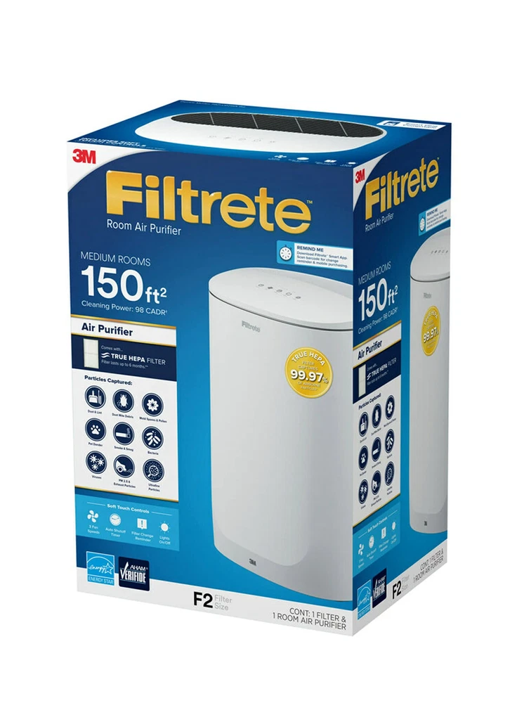 Cleaner indoor air can be yours—even if you don’t have an HVAC system. The Room Air Purifier device and its filter help reduce airborne particles in the air you breathe. This stand alone unit works well in medium sized rooms and includes a True HEPA Filter that captures 99.97% of particles you can’t see, such as mold spores, pollen, pet dander and more* (*Disclaimer: As small as 0.3 microns from the air passing through the filter media. Initial efficiency value) CLEANER AIR CAN BE YOURS; The Air Purifier device and its filter help reduce airborne particles in the air you breathe INCLUDES A TRUE HEPA FILTER that captures 99.97% of airborne particles you can’t see (Disclaimer: As small as 0.3 microns from the air passing through the filter media. Initial efficiency value) PARTICLES CAPTURED include dust, lint, dust mite debris, mold spores, pollen, pet dander, smoke, smog, bacteria, viruses, PM 2.5, exhaust particles, and ultrafine particles CLEANS MEDIUM ROOMS up to 150 square feet with a smoke Clean Air Delivery Rate of 107 CADR BUILT IN ELECTRONIC FILTER CHANGE INDICATOR on the control panel will turn on when a new filter is needed so you never miss a filter change SOFT TOUCH CONTROLS help you easily change fan speeds, set a run timer, dim the control panel lights, and reset the filter change indicator REPLACE YOUR FILTER EVERY 6 MONTHS with the Premium Allergen, Bacteria & Virus True HEPA replacement filter, F2 size (Disclaimer: Based on 12 hours of use per day) FOR RESIDENTIAL use only knows your home filtration needs are as unique as you are, that’s why we’ve designed a family of room air purifier filters and devices to fit your lifestyle - from small to large rooms; True HEPA, to Odor Reduction - has you covered