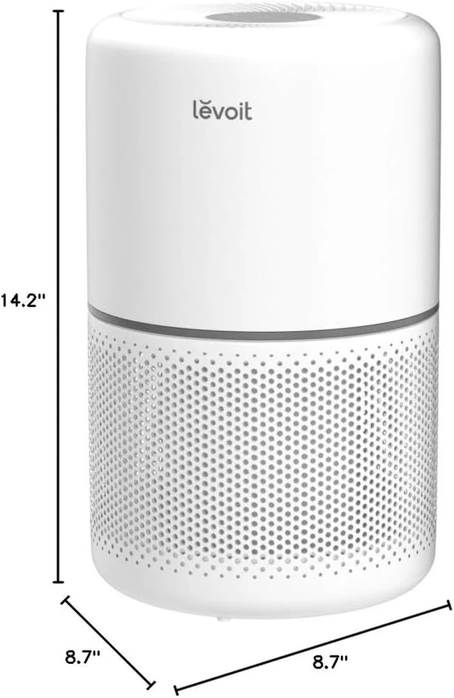 The air purifier features a 56W long-life high-torque motor, a versatile 8.7 x 8.7 x 14.2-inch size and 141CFM CADR, weighs 7.9 lbs, and can purify up to 1095 ftΒ² with the original filter. The Levoit Original Filter is HEPA-grade while operating in Sleep Mode, as tested by an independent lab. ππππ ππππ πππππππ: Enjoy fresh air in minutes with the Core 300-P Air Purifier (Model No.: Core 300), which has a CADR of 141 CFM/240 mΒ³/h and can purify the air of 1095-ftΒ² spaces once per hour (based on Levoit's Original Filters; not applicable to other replacement filters). πππππππ πππππππππππ π ππππππ: For the best performance and longest lifespan, use official Levoit replacement filters. Levoit filters provide the best fit and filtration, while off-brand filters may be unreliable and may damage the air purifier. ππππππππ π πππππ πππππππ: Choose from a variety of replacement filters to best meet your needs. The Toxin Absorber Filter specializes in smog, toxins, and VOCs, while the Smoke Remover filter addresses smoke from wildfires, smoke, and other particulates. The Pet Allergy Filter captures fur and absorbs unpleasant odors. π πππ ππππππ : Our filter has strong filtration performance of ultra-fine particles. 99.97% filtration efficiency for 0.1 to 0.3ΞΌm airborne particulates, including pollen, dust, and animal dander allergens. Tested by an independent lab. πππππππ-πππππ πππ πππππππ: Select Sleep Mode at night and forget all about your air purifier while you sleep. QuietKEAP Technology reduces noise levels to a near-silent 24dB in Sleep Mode, ensuring you get a good night's rest. πππππ ππππππ: The Core 300-P Air Purifier (Model No.: Core 300) effectively purifies your home while blending in with your decor. Its award-winning design (Red Dot, 2020) and modern white finish ensures that it fits in any room in your home. πππππππππππ πππππππππ: The display light can be turned off to enjoy a perfect night of sleep without being distracted by the light. The display also features a timer for 2/4/6/8 hours and filter lifetime indicator. πππ π & π ππππ ππππππ πππ: The Core 300-P is Energy Star Verified, FCC certified, and ETL listed, and complies with California Air Resources Board (CARB) for indoor cleaning devices. ππππππ: Our products are manufactured in both Vietnam and China, so you may randomly receive a machine made in either country. ΒΉNotes: *Our filter has a strong filtration performance of ultra fine particles. 99.97% filtration efficiency for 0.1~0.3ΞΌm airborne particulates, including pollen, dust, and animal dander allergens. Disclaimer: Tested by an independent lab. Β²CADR and Coverage area are calculated based on Levoit's Original Filters and are not applicable to other replacement filters. Β³Notes: *Levoit Original Filter is HEPA-grade while operating in Sleep Mode, as tested by an independent lab. β΄Notes: *For the best performance and longest lifespan, use official Levoit replacement filters.