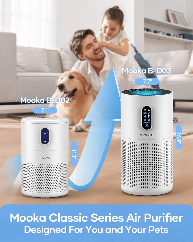 Air Purifiers for Home Large Room up to 1500 ft², HEPA Air Purifier for Home Pets Hair in Bedroom with Aromatherapy, Air Filter Cleaner for Dorm, Pets, Office, 20dB, Night Light, B-D03, White HIGH-PERFORMANCE AIR PURIFIERS FOR HOME LARGE ROOM: Enjoy fresh air in minutes with the 2024 new upgraded B-D03 pet air purifier. With a brushless motor and 360-degree air inlet technology, it refreshes the air per hour in spaces up to 1500 sq ft, 4 x per hour in 375 sq ft. Modern design fits in any space from small to large rooms. Perfect for pet owners, babies, children, the elderly, or anyone wanting to improve the air quality PERSONALIZED AROMATHERAPY & NIGHT LIGHT: This air purifiers for home pets has a built-in aromatherapy function, enhance your indoor air with your favorite scent by adding 4-5 drops of essential oil to the top aromatherapy pad. and with the 360° cycle purification of the air purifier, the fragrance will spread throughout the room. But that's not all, our room air purifier also has a built-in night light, perfect for creating a cozy and relaxing atmosphere in your bedroom or living room MULTI-FUNCTION & QUIET OPERATION AIR PURIFIER: This air purifiers for bedroom has 4 adjustable fan speeds (S/L/M/H). and the sleep mode is very quiet with noise as low as 20dB. The timer option (2/4/6/8H) allows you to set the air purifier to run for a specific time, helping you save energy and money. The child lock function prevents babies or pets from accidentally touching the buttons, making your life more convenient and safer POWERFUL H13 TRUE HEPA AIR PURIFIER: pet air purifier is equipped with 3-stage high-efficiency filtration system, effectively filters pet hair, dander, smoke, odor and large dust particles, in addition to removing all airborne contaminants as small as 0.3 microns FILTER REMINDER: This air purifier for dorm is equipped with a filter reminder to ensure that you always enjoy the fresh air. When the HEPA air filter has been used for over 1440 hours, the filter indicator light will light up to remind you to replace the filter. Press the "Filter Reset" button for 3 seconds to reset it. We recommend buying official filters to replace the filter for optimal purification. (Search for B0DDCSS24Y) AUTHORITATIVE CERTIFICATION: CARB, ETL, DOE, FCC and ETL certified (Available for California). No Ozone Release, No UV light, the best choice for home and pet air purifiers, always protecting the health of you, your family and pets IDEAL PRESENT: This H13 true HEPA air purifier is suitable for dorm room, bedroom, living room, apartment, office, nursery, basement and kitchen. Our B-D03 air purifiers for pets has a stylish and elegant design and efficient purification capabilities is a perfect present for housewarming parties, weddings, birthdays, Thanksgiving Day, Christmas EXCELLENT : Each air purifiers for home has been rigorously tested by our company to ensure its quality and durability. We offer 2-year , and . If you have any questions, Please don't hesitate to reach out to us, and we will reply to you within 24 hours