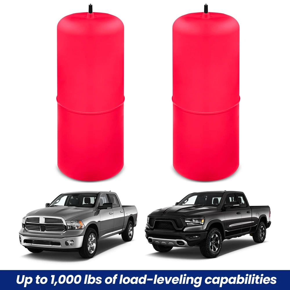 VEHICLE MODELS COMPATIBILITY LIST -- Rear air spring suspension kit compatible with 2009-2022 RAM 1500 Pickups and 2009-2022 RAM 1500 Classic Pickups. REPLACEMENT OEM NUMBER -- Replaces AirLift 60618 loadLifter 1000 ultimate plus kit. EXCELLENT PERFORMANCE -- Up to 1,000 pounds of load leveling capability, adjustable air helper springs level your load, increase your safety and comfort with no load, loaded, or towing on any road condition. PACKAGE -- 2pc of air b ags, all brackets, installation manual, bolts and nuts you need for installation, inflation valves, elbow fittings, and tubing. EASY TO INSTALL -- With strict production standards, air helper spring kit are designed to match the original equipment. You can follow our installation manual and complete the installation step by step.