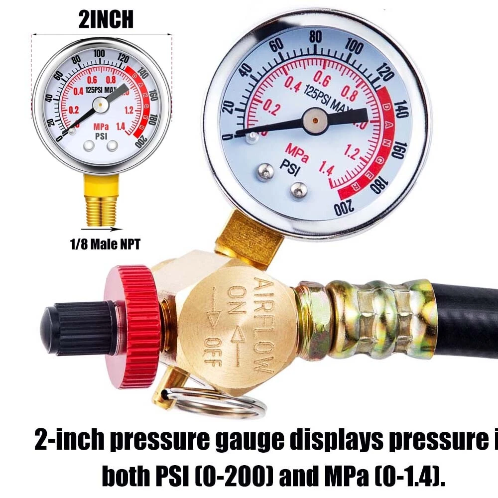 Product Description If there are any problems after you purchased, please feel free to message us firstly, we will definitely give you a satisfying solution. Please don't leave neutral or negative feedback or open a return request without any communication. Before you buy, check the size to make sure it can fit your car,thanks Features: Air Tank Valve Kit with Gauge Air Tank Repair Kit The tank end is 1/2" MNPT. The gauge port is 1/8" FNPT. The outlet (hose) port is 1/4" FNPT. The air tank pressure gauge range from 0-200 PSI/0-14Bar The air hose length is 4feet/48inch built with a 2" dual scale dial With an aluminum on/off knob, to comply with air tank use. Great choice for the air tank repair kit Specification: 100% BrandNew Material: Brass & Steel & PVC Color:As pictures shown Package includes: 1 x 0-200 PSI pressure gauge 1 x 4 feet PVC air hose 1 x air tank manifold 1 x teflon tape Shipping 1. Items will be shipped within two business days when we received payment. There will be delay when it meets weekend and majoy hoildays, hope you can wait patiently.thanks. 2.The item will be shipped to buyer’s CORRECT and VERIFIED Ebay Address. 3.We are not responsible for the package lost due to incorrect address. 4. International buyers please note: a.Import duties, taxes and charges are not included in the item price or shipping charges. These charges are buyer’s responsibility. We will try our best to reduce the risk of the custom duties. Returns ▲▲▲ Please contact us first before you sent a return request ▲▲▲ Any problems you meet, we will help to solve it,We will ensure that customers do not suffer losses, please don't worry.Trust us!!! 1) No NEED TO RETURN . If you received an incorrect, damaged, defective, or item not as described, Just Contact us directly by ebay messages,send us the photos, videos, we will give you the partial or full refund or replacement on our cost. 2) If you sent a return request ,please selete the reason for return: Changed my mind/Just didn't like it/Order by mistake .Thanks for your cooperation. Return products must also be in its original condition: including box, packaging and all other accessories. Please email us your return tracking number too,thanks. Payment 1. Instant PayPal payment is required. 2. We also accepts Visa, MasterCard, Discover, and American Express through PayPal guest checkout. 3. Sales tax is charged by eBay based on your shipping address. 4. To uphold a shipping speed, your order will be processed almost immediately. If you change your mind after your payment is confirmed, we will do our best to stop the order, however, we CANNOT guarantee the cancellation. Contact US 1. We work 5 days (Mon to Friday) a week . If you have any questions please contact us by email, most emails are responded within 24 business hours. Weekend and Holodays will be delay, please give us some time and tell us your problem clearly ( including photos or videos will be better ), we will and we can fix it faster. 2. We strive for 100% customer satisfaction on every sale we complete. 3. If, for any reason you are not satisfied with your purchase, please contact us before leaving neutral or negative feedback. We will work with you. 4. Please send email directly or try send email by other account. The feedback forum is not the place to leave us a message. Feedback 1.Dear buyers, we appreciate your business, if you are satisfied with our service, Please leave us a positive feedback and rate the details of the transaction (Detailed Seller Ratings) with a " PERFECT 5 Star. 2.Your recognition will make us more confident to develop business and serve you better. 3.Our goal is to make sure you are a happy buyer and pleasant shopping with us. Please email us before leaving any 1 or 2 ratings, negative feedback or open any dispute.We understand the concerns and frustrations you might have, and will do our endeavor to resolve the issues.Please give us the opportunity to resolve any problem. powered by