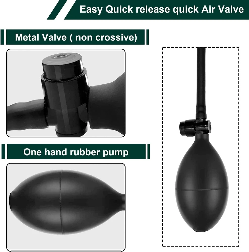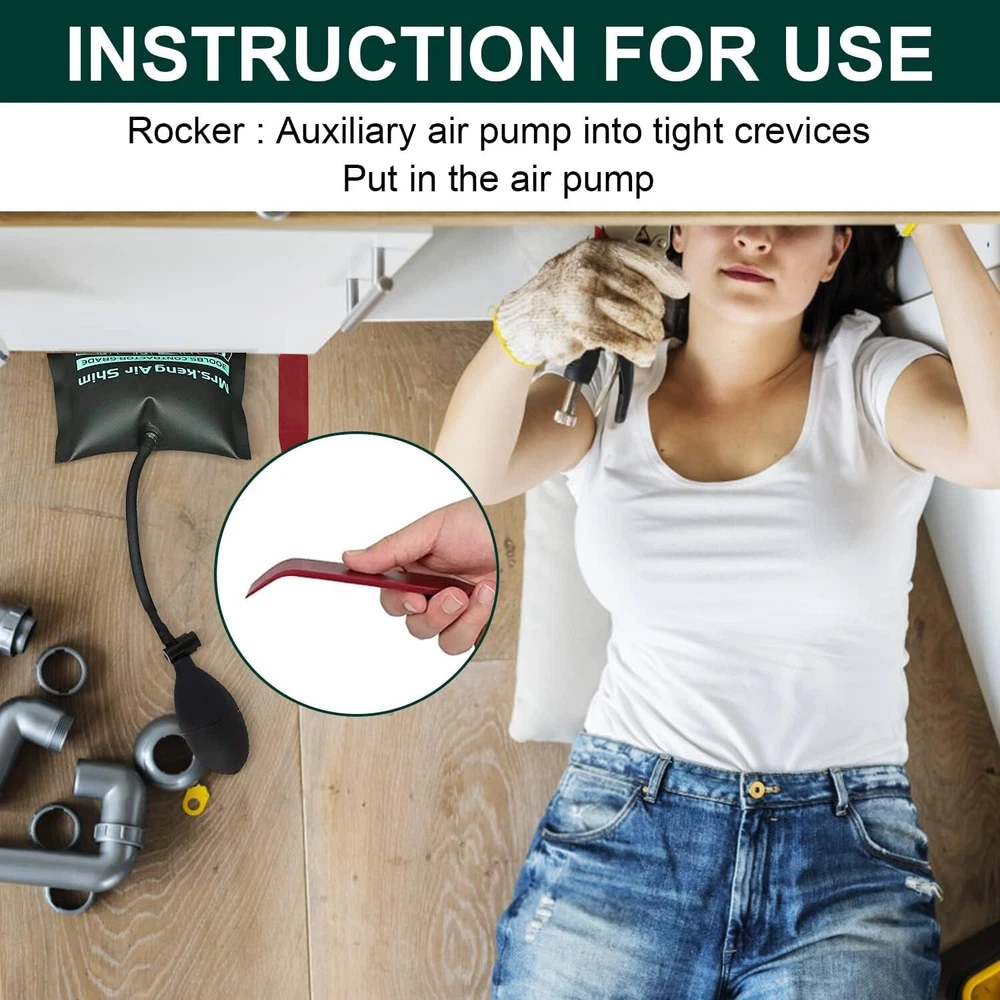 Air Wedge Bag Pump Kit Inflatable Leveling Tool For Window Door Alignment 300LB Work done by many people may only need one person to finish. Our inflatable lifting bag, 2 sizes, are Great for multiple jobs, including holding in place and leveling window frames, door frames,countertops, cabinetry, furniture and more! The inflatable air bag come with easy carry storage bag & 3 Piece free auxiliary tools. Our air wedge bag fit into tight 2/32 inch gaps and opens to 3 1/2 inches wide with one hand pump operation. Quick easy push button for precise leveling with one hand. 300 LB load rating↑ Quicker and easier release push button↑ Interior side TUP durable material PP board insertion↑ Exterior side 840D Nylon material↑ Durable, precise leveling The rounded corners, stiff durable edges, smooth exterior and INTERNAL STIFFENER make it easier to insert, The inflatable jack won’t fold under pressure; Unlike other tools or wood wedge, car air wedge bag will not damage or wear the surface of the object during use. , no-scuff cover leaves no marks. Nice Tool. Return Policy: We offer a 30 day return policy from the receiving date. Please contact us for a Free Return Label. Please use our return label so it will go back to our supplier and we can do a refund or replacement afterwards. Feedback: Your satisfaction is very important to us! If you have any problem with your order, please contact us and we will do our very best to make you satisfied. As long as you are happy with your purchase, please leave a positive feedback for us. We will always leave you a positive feedback in return. If you have any problem with your purchase, please do not leave a negative feedback. Please Contact us ... and your issue will be solved quickly and positively We are a small family-owned business trying to make a living, not a huge company that does not care ... We will ALWAYS do our best for you!