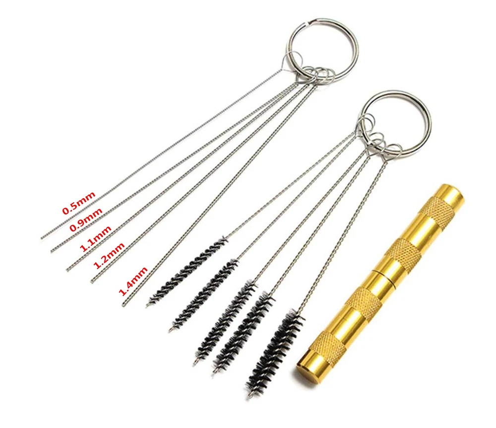 Specification: Material : Stainless steel with nylon bristles Color :As the pictures shown Size: As the pictures shown Package includes: 1 x Golden needle tool 5 x Stainless steel needle tools 5 x Brushes 11 Piece Cleaning Kit come with 3 kinds of tools. With 5 in 1 Mini Cleaning Brush Set, 5 in 1 Mini Cleaning Needle Set and 1 golden needle tool Functional and Practical:This airbrush spray gun cleaning repair tool kit is ideal for clearing airbrush nozzles blocked with easy-grip, grooved handle Contains 5 different diameters of brushes, vary from 2, 2.5, 3.2, 4 to 5 mm to meet your requirment The cleaning kit can restore your nozzle back to perfect condition With careful use A must-have accessory for the user of airbrush,for beginner or professional