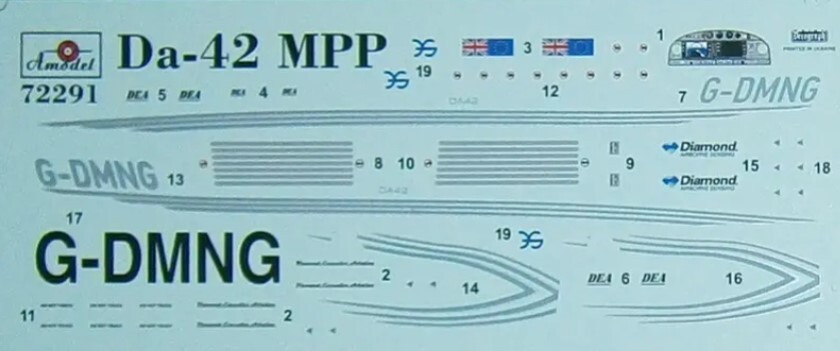 Aircraft Diamond DA42 MPP Scale 1:72 Plastic model kit AMODEL 72291 ---------------------------- If you have a desire to procure a GREATER NUMBER OF ITEMS THAN WHAT IS CURRENTLY DISPLAYED, kindly let us know, and we will happily modify our offerings to suit YOUR EXACT QUANTITY NEEDS. ---------------------------- Scale: 1/72 Manufacturer: AMODEL (Ukraine) Country/Region of Manufacture: Ukraine Condition: New in Box Features: Kit Plastic model 1/72 Diamond DA42 MPP (Amodel No.72291) Length, mm: 118 This set includes: 7 sprues with parts 1 frame of transparent plastic (canopy) decal (sticker) scheme for painting model detailed instruction Glue and paints are not included ---------------------------- >>> Visit our eBay store! <<< You will find everything you need at great prices. Scale model accessories are a wide range of parts, spares, and components that can help you make your model even more realistic and detailed. In our catalog, you will find everything you need to assemble and repair model cars, airplanes, ships, tanks, and weapons. Our accessories are made from high-quality materials and meet all standards. We offer a wide range of models and sizes so you can find what you need. Buy scale model accessories in our store and make your model even more unique!